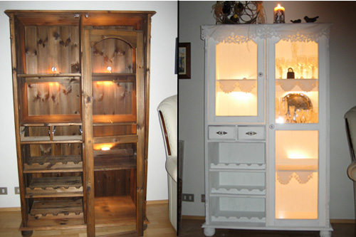 Jæja þá er næsti skápur kominn úr kalkmeðferðinni góðu og er ég alveg rosalega ánægð með útkomuna á honum 🙂 og þegar raða átti aftur inn skápinn, því sem var í ´onum áður, þá þótti mér sumt ekki vera nóg og „flott“ til að fara inn í skápinn. svo nú er verið að skoða lagerinn og hvað hægt sé að flytja milli staða 😉