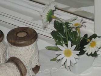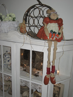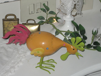 Kanína mín á flotta hvíta stofuskápnum og hænuklippimyndir sem ég gerði fyrir mörgum, mörgum árum…