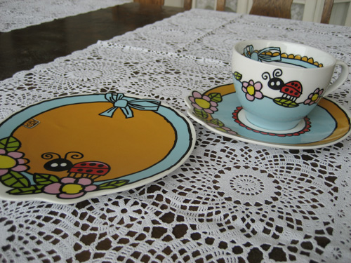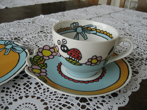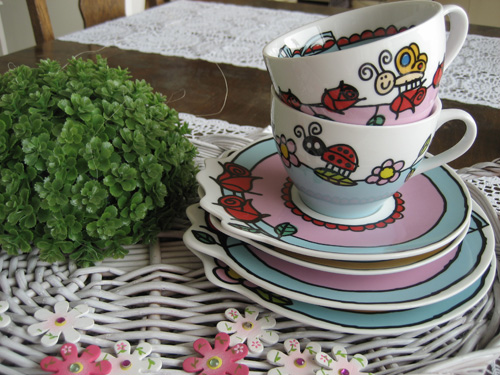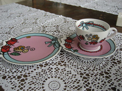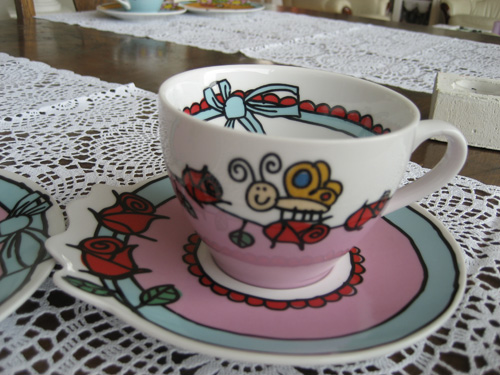 Mér hlotnaðist nú á dögunum, 2 pör af yndislega fallegum og glaðlegum bollum. Ég má til með að deila með þér myndum af þeim. Maður getur ekki annað en fengið glampa í augun við það eitt að horfa á þá, hvað þá að drekka úr þeim :)hægt að skoða síðuna þeirra á www.babetteharm.nl og á facebook. Ég varð líka að taka smá myndaséríu af „gamla“ fallega bollastellinu mínu sem Gunna amma gaf mér hér í denn…