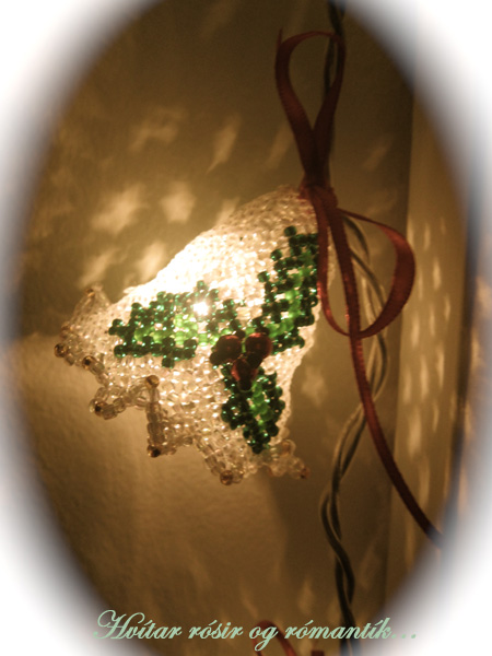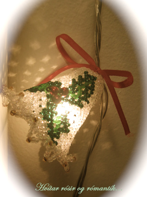 Ég á móðir sem er algjör snillingur og er að dudda við að gera svo margt fallegt. Ég bara verð að deila með ykkur ofboðslega fallegri jólabjölluseríu sem hún gerði úr perlum og gaf mér. Heppin er ég 🙂 Skoðið nú og ég veit að þið verðið sammála mér að hún er snillingur…