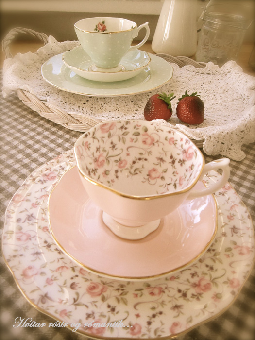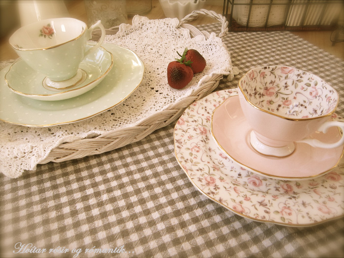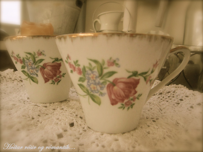 sjáið nú þessa! þessir eru gamlir frá Gunnu ömmu. Bollar með sögu, ekki eru þeir síðri. Svenni frændi laumaði þeim að mér, sagðist hafa verið hugsað til mín þegar átti að fleygja þessum gersemum. Hann mundi að ég „safnaði öllu gömlu“ 😉