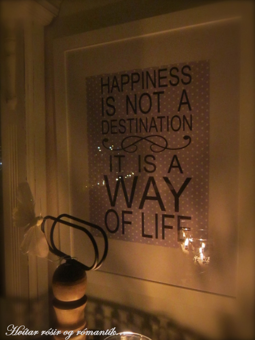 Nú eru til svo svakalega mörg falleg og skemmtileg járnskilti, með bæði fallegum orðum og líka nokkrum hnittnum 🙂 oooog mikið langar mig í mörg þeirra, en það er víst ekki í boði. Svo mín fór bara í IKEA keypti ódýran hvítan Nyttja ramma 34×44 cm á 595 kr ! fór svo heim og prentaði á sætan pappír sem leyndist á heimilinu og hókus pókus komin líka þessi flotta lesning upp á vegg. Nú getur frúin bara skipt út reglulega…