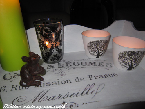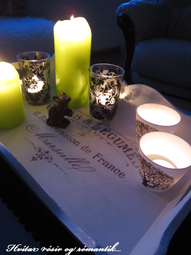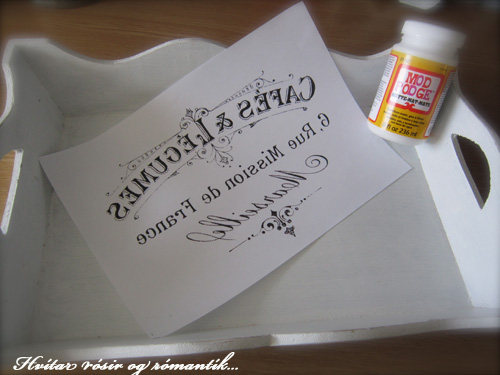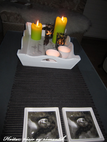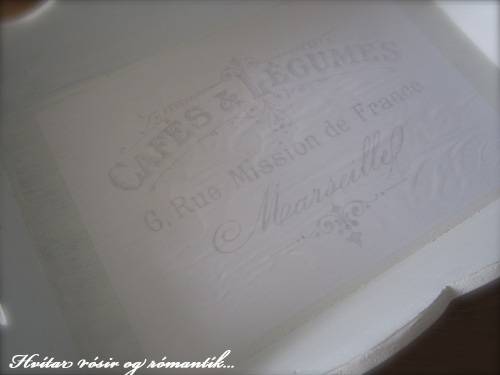 Hér koma svo myndir af bakkanum mínum sem ég „sjænaði“ í gær og aðferðin er sú sama og er á glerplöttunum. Gjörið þið svo vel…