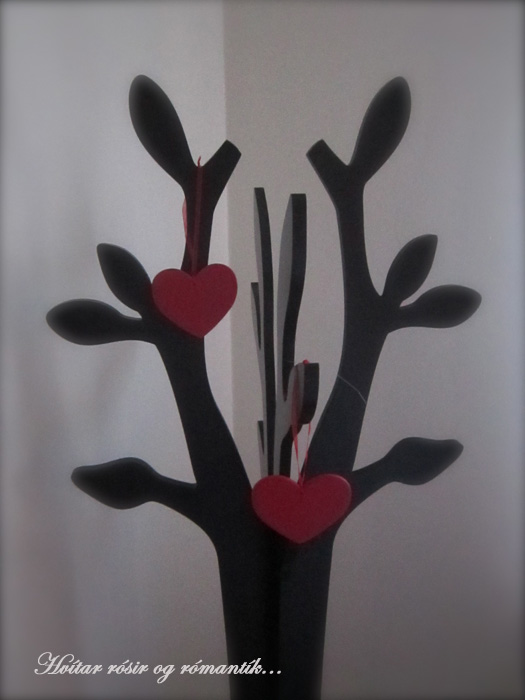 Ég keypti mér flott fatatré fyrr í vetur sjá hér https://gunnabirgis.wordpress.com/2013/02/17/fatatre-eda-thannig/ sem ég skreytti með hjörtum, voða sætt…