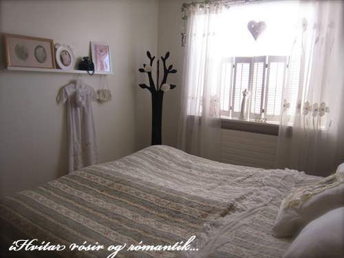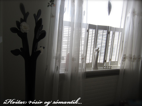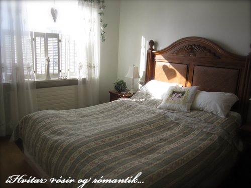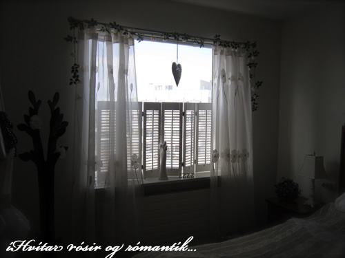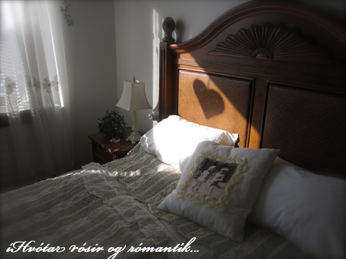 IMG_1780                                Sólin varpar skemmtilegum skugga af hjartanu, sem hangir í svefnherbergisglugganum á rúmgaflinn..