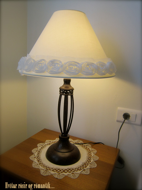 Ég elska rigningardaga, því þá er ekkert eins skemmtilegt og snuddast eitthvað inn við og t.d. sauma eða gera ýmsar breytingar 😉 Ég virðist ætla að verða svo heppin að þetta sumar ætlar að verða frekar blautt og þá er nú kátt í koti… í dag fékk ég þá flugu í hausinn að sniðugt væri að dubba dulítið uppá lampana í svefnherberginu, mér fannst þeir frekar strípaðir greyin. Ég fékk þessa flottu blúnduleggingu í versluninni Twill www.facebook.com/pages/Twill-Vefnaðarvöruverslun/323593651018090?ref=ts maður getur nú alveg misst sig þar inni! En ég stóðst freystingar að þessu sinni… Kíktu á myndirnar af framkvæmd dagsins 🙂