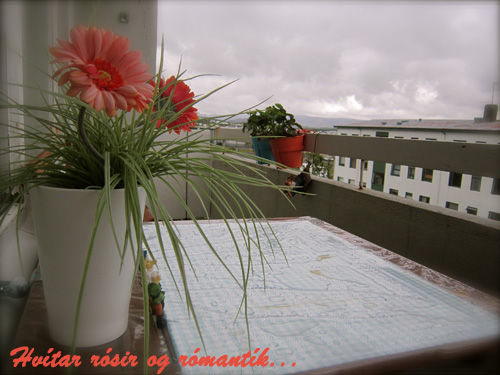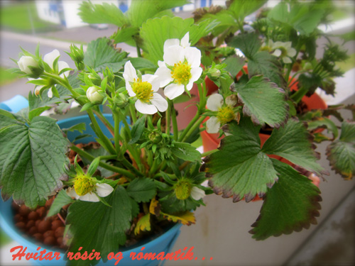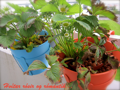Ein af uppáhalds bókunum mínum er „Blómin á þakinu“ og fjallar um hana Gunnjónu sem ræktar garðinn sinn á svölunum sínum… Ekki það að ég sé með mjög græna fingur, reyndar eru þeir svo föl grænir að ég jafnvel drep gerfiblóm 😦 En nú hef ég verið svo „heppin“ að það hefur ringt svo mikið í sumar að jarðaberjaplönturnar mínar lifa nokkuð góðu lífi á svölunum mínum. Maður hefur reynt að taka þetta á Pollýönnu háttinn og troðið upp með sól í hjarta og söng á vörum ( þó ég sé nú kannski ekki besti söngvarinn í Hafnarfirði 😉 ) Ég skellti mér út í morgun og smellti nokkrum myndum af „ljúfum sumardegi“ eða þannig…