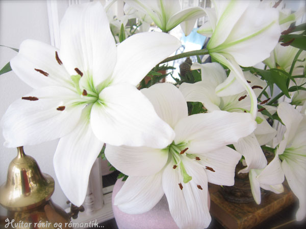 Liljur eru uppáhaldsblómin mín og um daginn var ég svo heppin að yndisleg vinkona færði mér liljuvönd… ég fór á stað með myndavélina og bara verð að láta fleiri njóta þessarra fallegu blóma með mér…