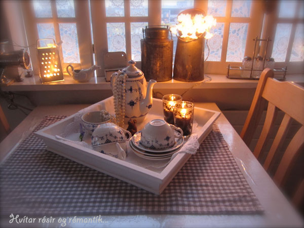 Það er ljúft að sitja í rökkrinu með kveikt á kertum og seríum… Eldhúsið er notalegur staður á svona kvöldi, endilega njótið með mér…