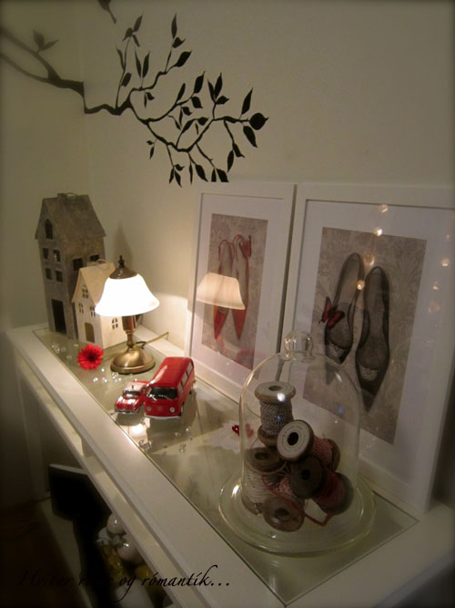 Ég fór í IKEA um daginn og rakst þar á myndir af skóm, og þar sem ég er svo hrifin af skóm (ha ertu hissa?) þá bara varð ég að fá myndirnar með mér heim! Nú þegar nýr hlutur kemur í hús þá þarf stundum að færa aðra hluti til og þetta getur kallað á breytingar (ha ertu hissa?) 😉 en hvað því líður þá voru breytingarnar myndaðar í bak og fyrir…