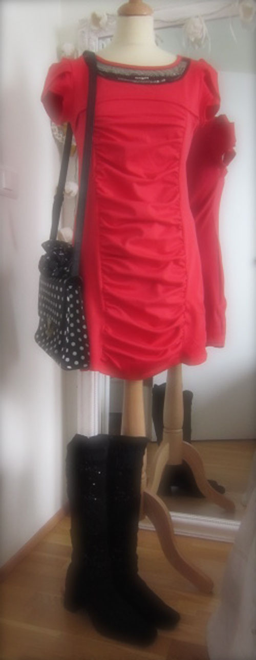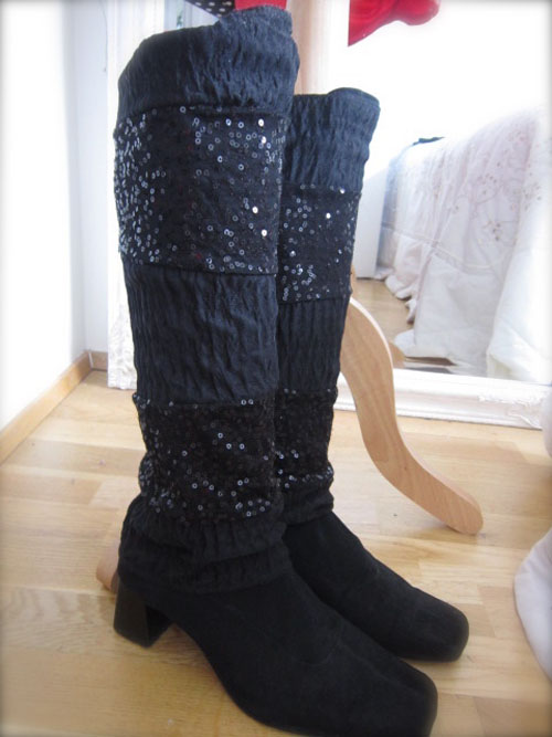 hér hef ég sett skó-legghlífar utan um há stígvél sem eru aðeins farin að slappast og þurftu örlitla andlitslyftingu!