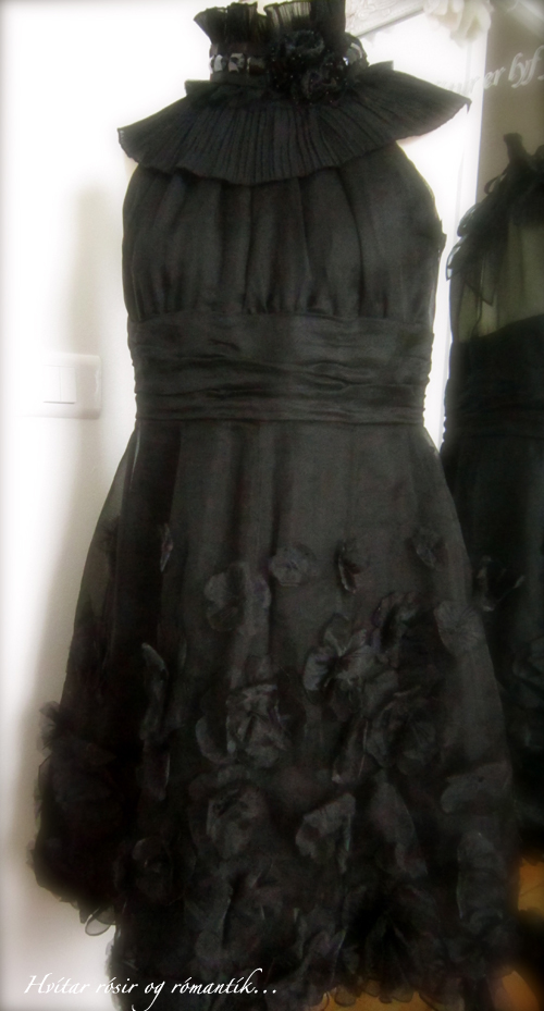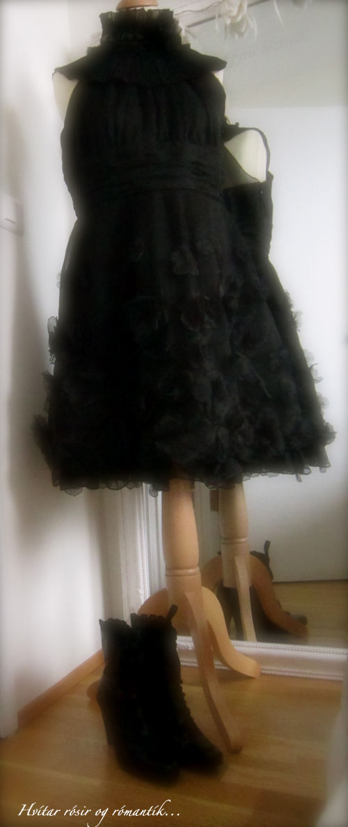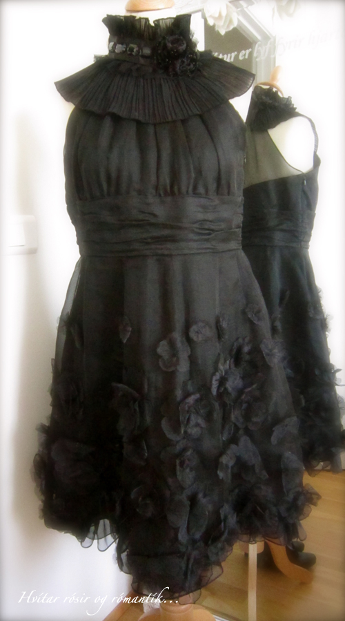 Gleðilegt ár! nú er fyrsti sunnudagur þessa árs runninn upp og næsti kjóll tilbúinn að koma í loftið… þessi er spari, svartur með blúndublómum á pilsinu. skoðum hann… 😉