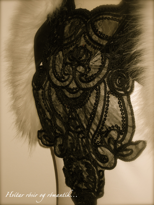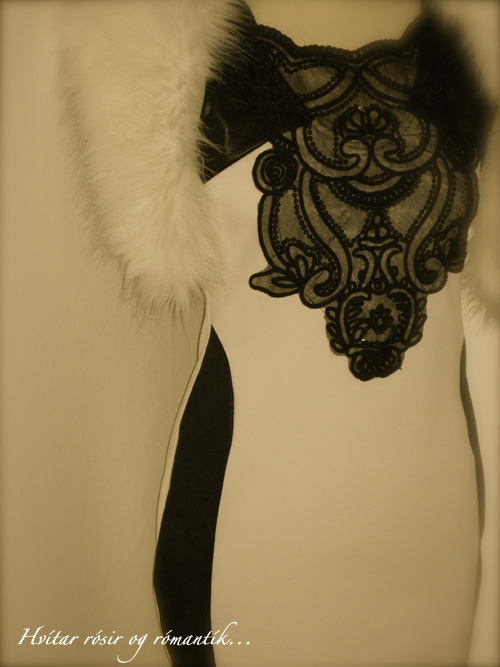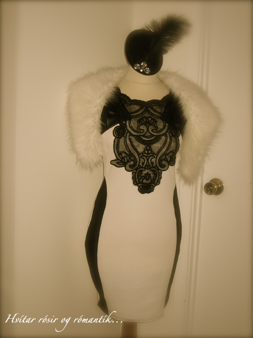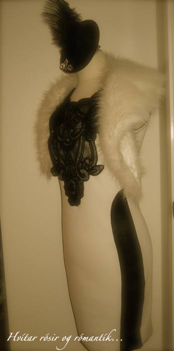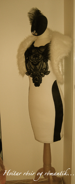 Kjóllinn í dag er hvítur með fallegri svartri blúndu.