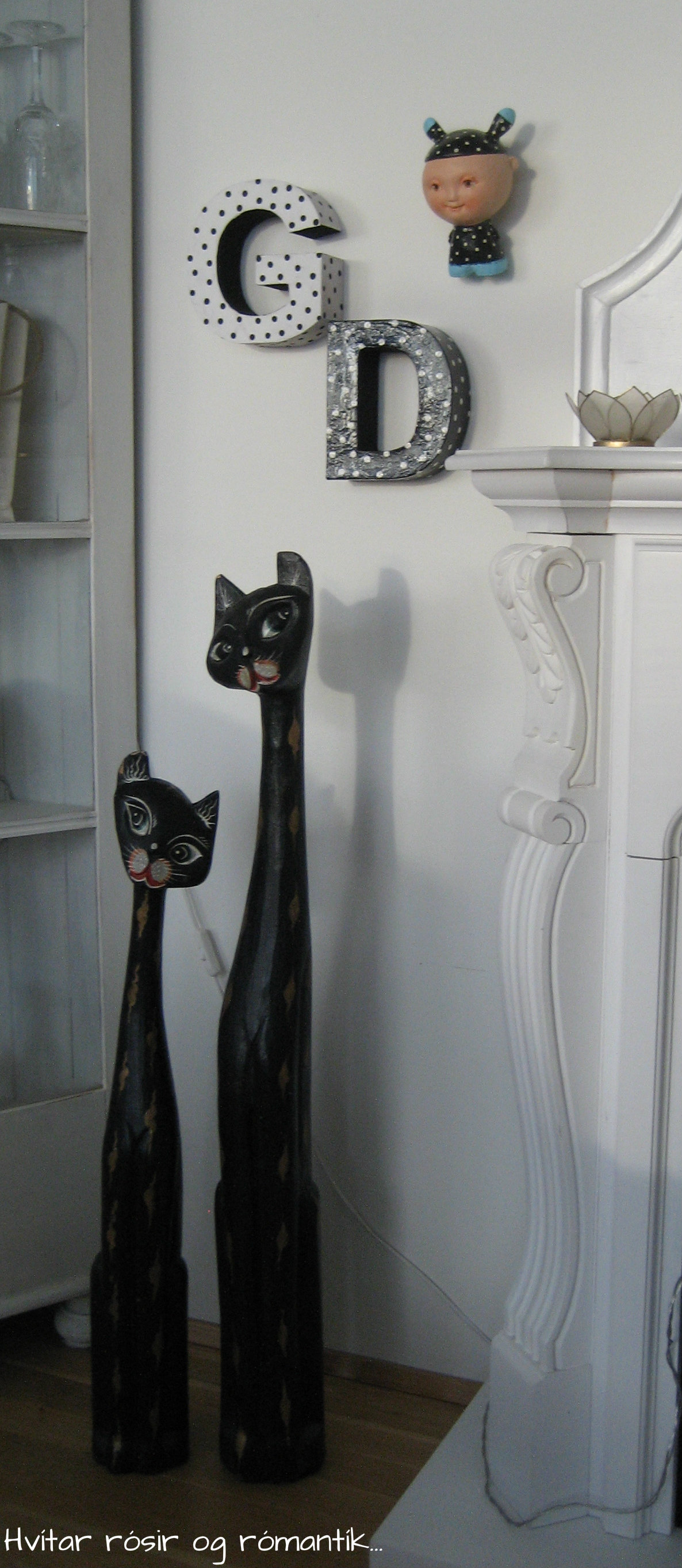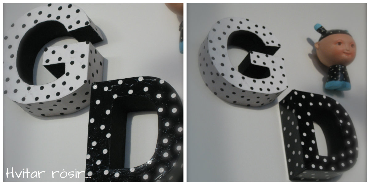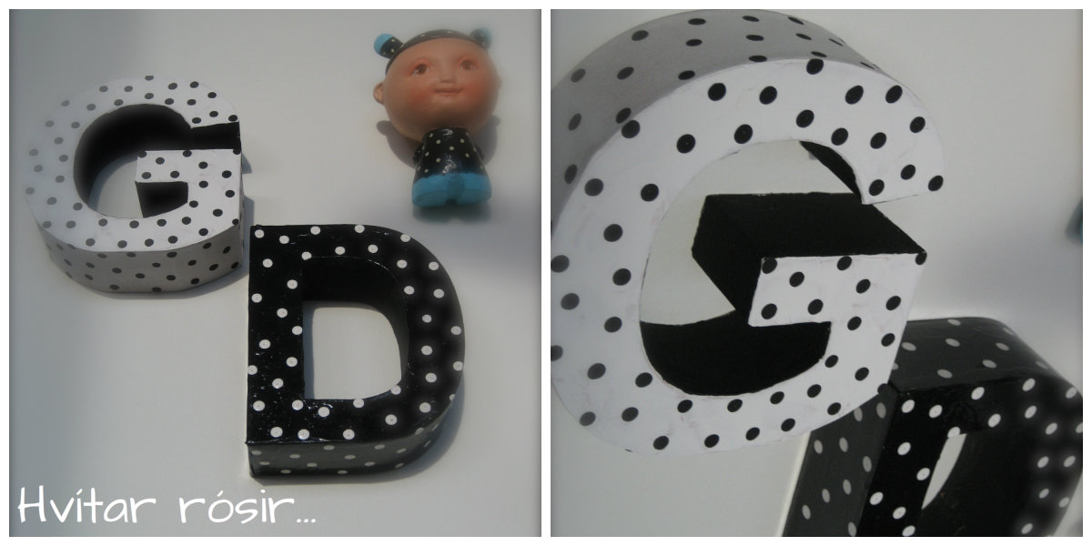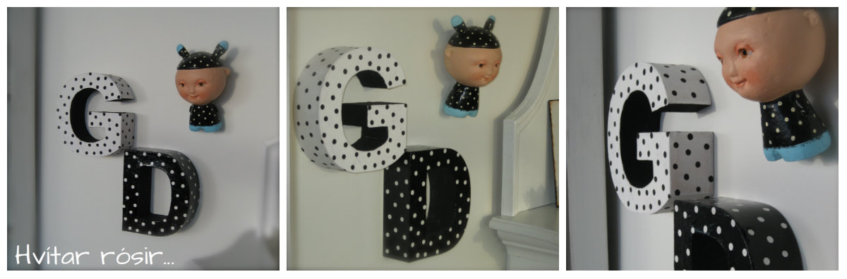 Jæja ég ætla að ljóstra upp myndaleyndamálinu sem ég birti hér í gær. Ég á svo flott KRÍLI eftir hana Línu Rut listakonu https://www.facebook.com/pages/L%C3%ADna-Rut/145550538794644 KRÍLIÐ mitt hefur verið dulítið einmana upp á vegg en mig langaði alltaf í systkini handa því. (það kemur örugglega seinna 😉 Ég fékk ágætis hugmynd -að mér finnst, það er að mála pappastafi sem ég á og er búin að marg mála og breyta (hver kannast við að gera svoleiðis…) kíkjum bara á myndir af´essu 🙂