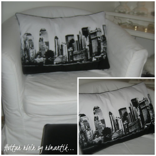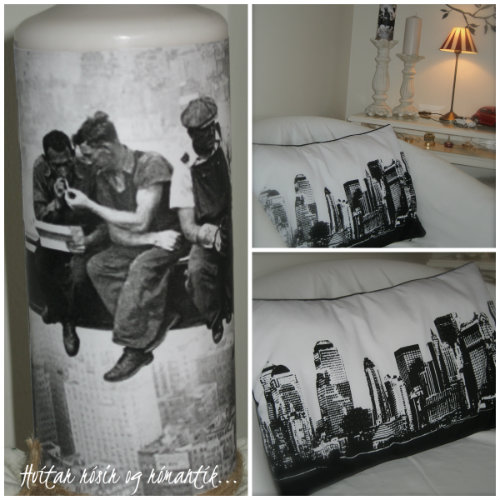 Ég hef verið að dáðst undanfarið af svo flottri mynd, sem tekin er af byggingaverkamönnum að borða nestið sitt uppi á járnbita á háhýsi… þessa mynd langar mig svakalega að fá á púða. Ég prentaði út á pappír myndina og skellti henni á kerti, sem kom bara nokkuð vel út og nú er stefnan sett á að prenta út myndina af gæjunum að leggja sig þarna uppi á járnbitanum 😉 svona til að milda biðina eftir púðanum mínum, þá fékk ég flottan púða með mér heim frá RL-design 😉 kíkjum á málið…