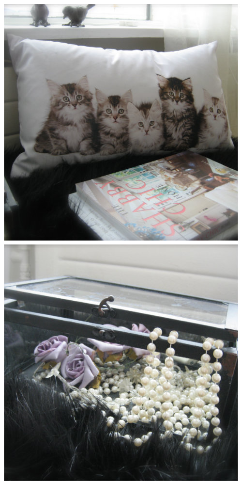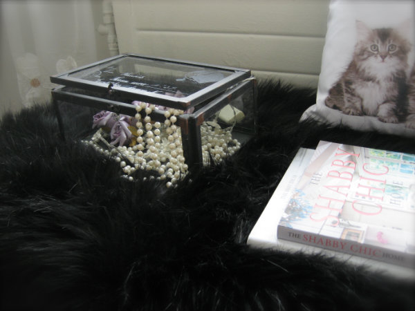 Sætur kisupúði kúrir á mjúku skinninu. En sjáið þið flotta glerkassann minn sem ég eignaðist um daginn, hann er bara „heven-seven…“ 🙂