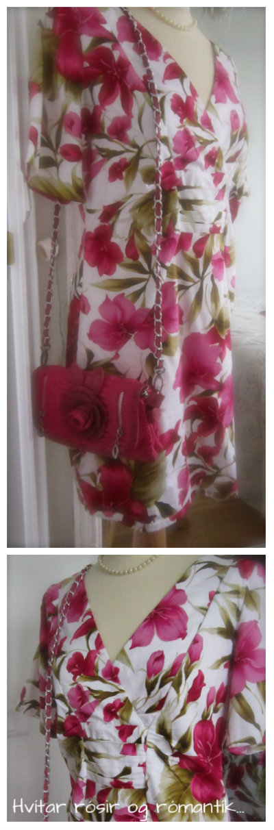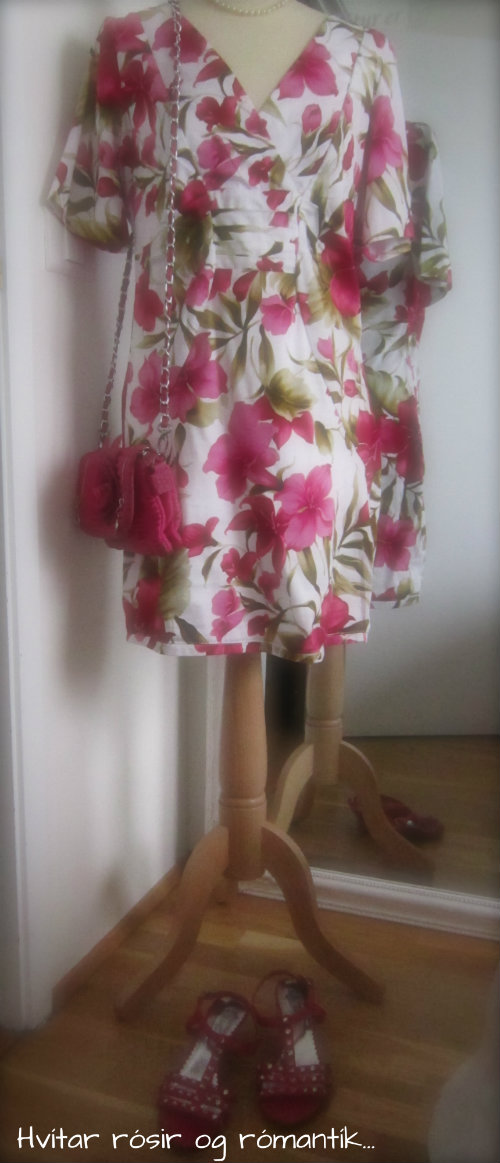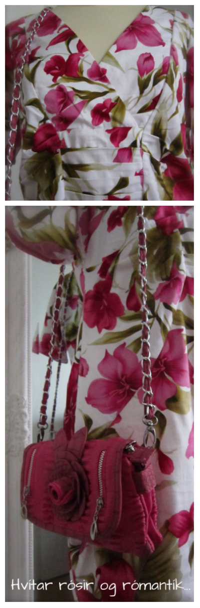 Bleika blómataskan mín er svo í stíl við kjólinn 😉