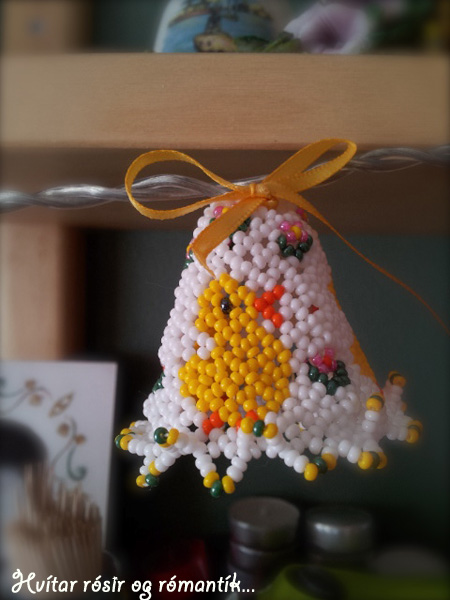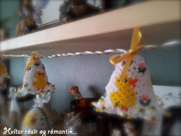 Sunnudagur leið og enginn kjóll! Mánudagur að klárast og enn enginn kjóll! Nú er tæknin og eitthvað meira að stríða mér, því myndirnar sem ég var búin að taka af kjólnum eru puffff…. horfnar úr tölvunni minni og myndavélin virðist vera gufuð upp! hvað er að gerast hér á bæ? Ég er þó heppin að geta sett inn mynd sem ég á af svo fallegu sem mamma gerði fyrir páskana í fyrra. Nebblega yndislega páskaseríu! sjáið bara…