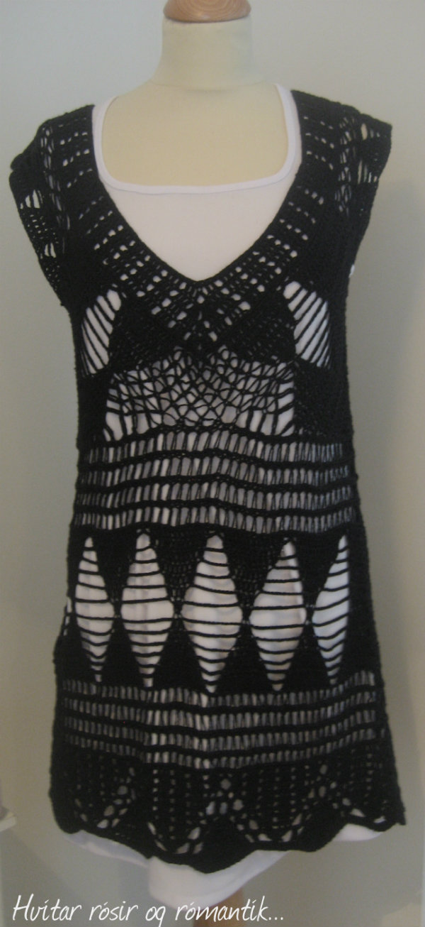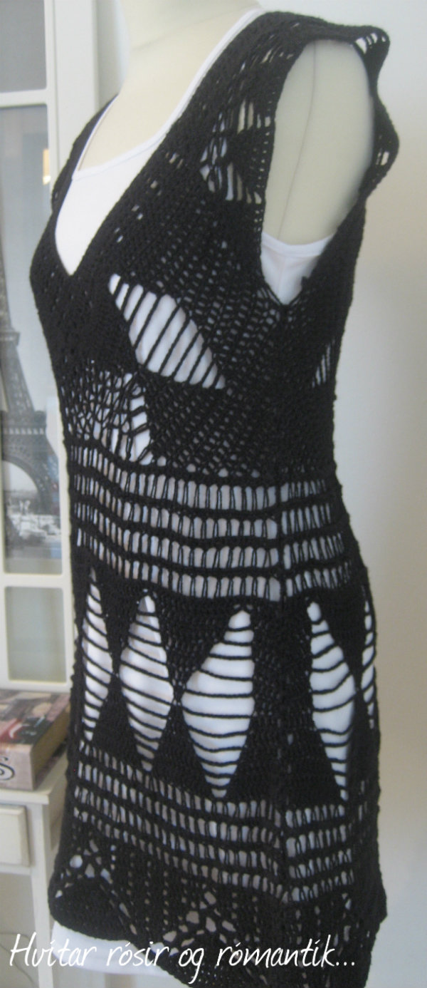 Þessa viku bíð ég upp á heklaðann svartann kjól. Hann var að vísu appelsínugulur í upphafi, en frúin litaði hann 😉