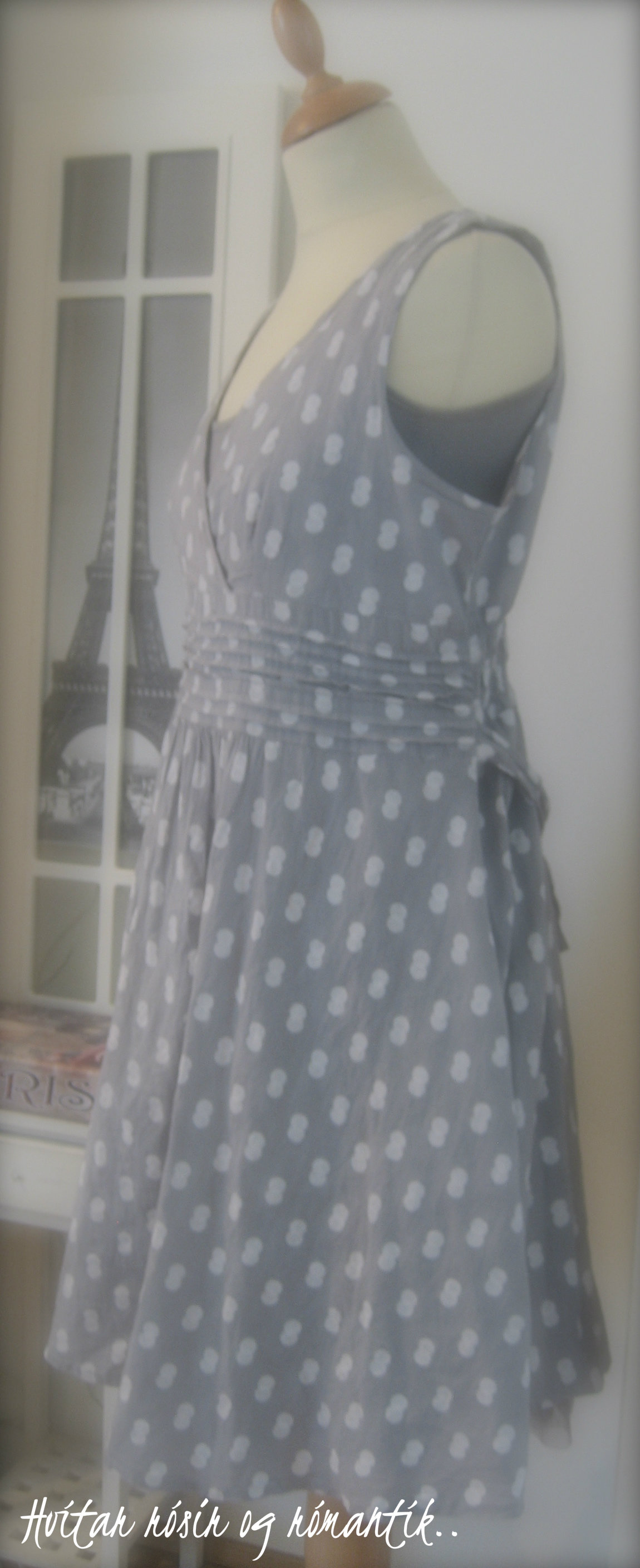 Kjóllinn er fallega grár, sem er einn af mínum uppáhaldslitum. hehehe ég á svoooo marga uppáhaldsliti, en það má alveg 😉 en ég kaupi ekki brún föt og myndi ekki samþykkja brúnan bíl á heimilið 😉