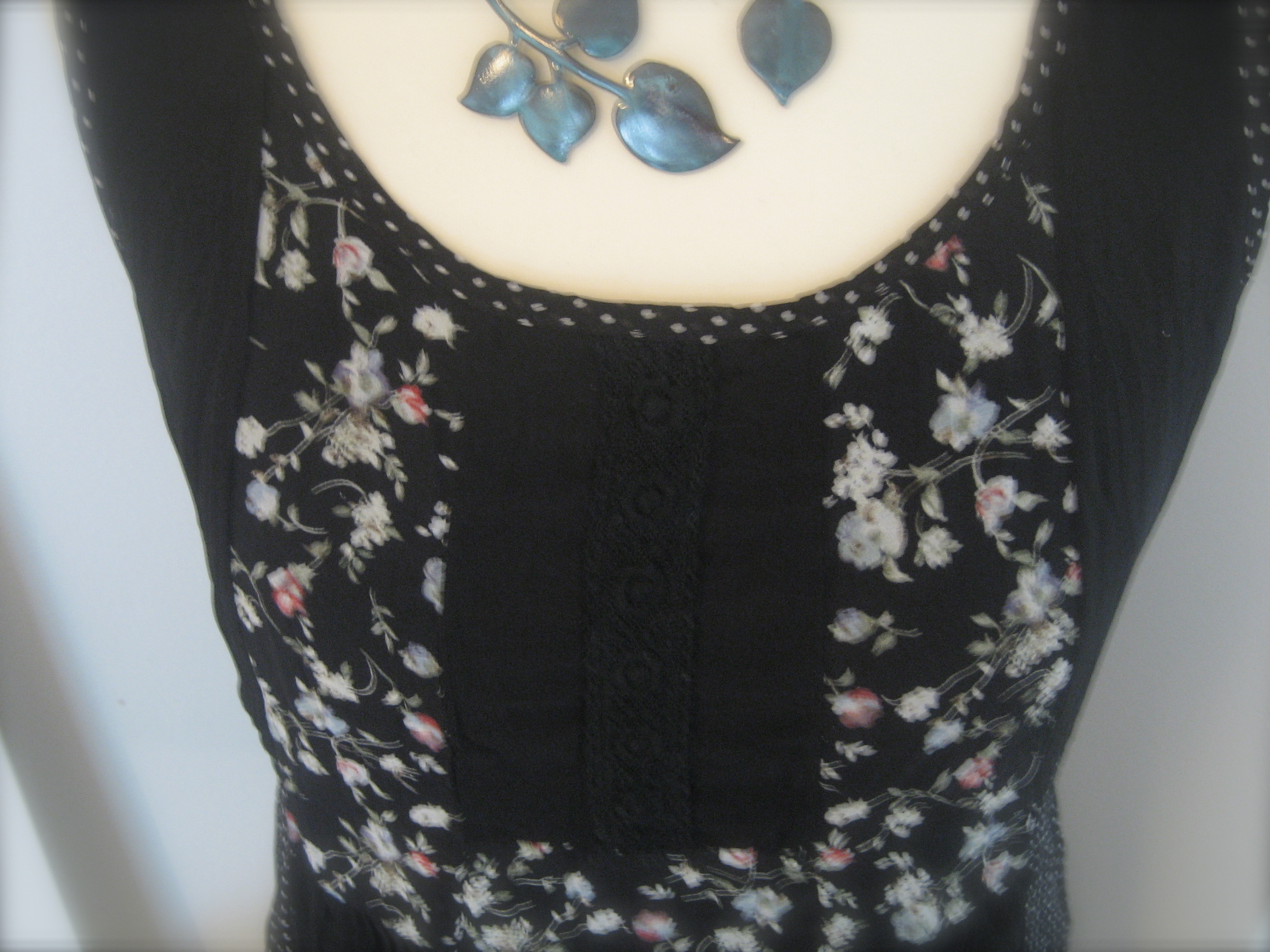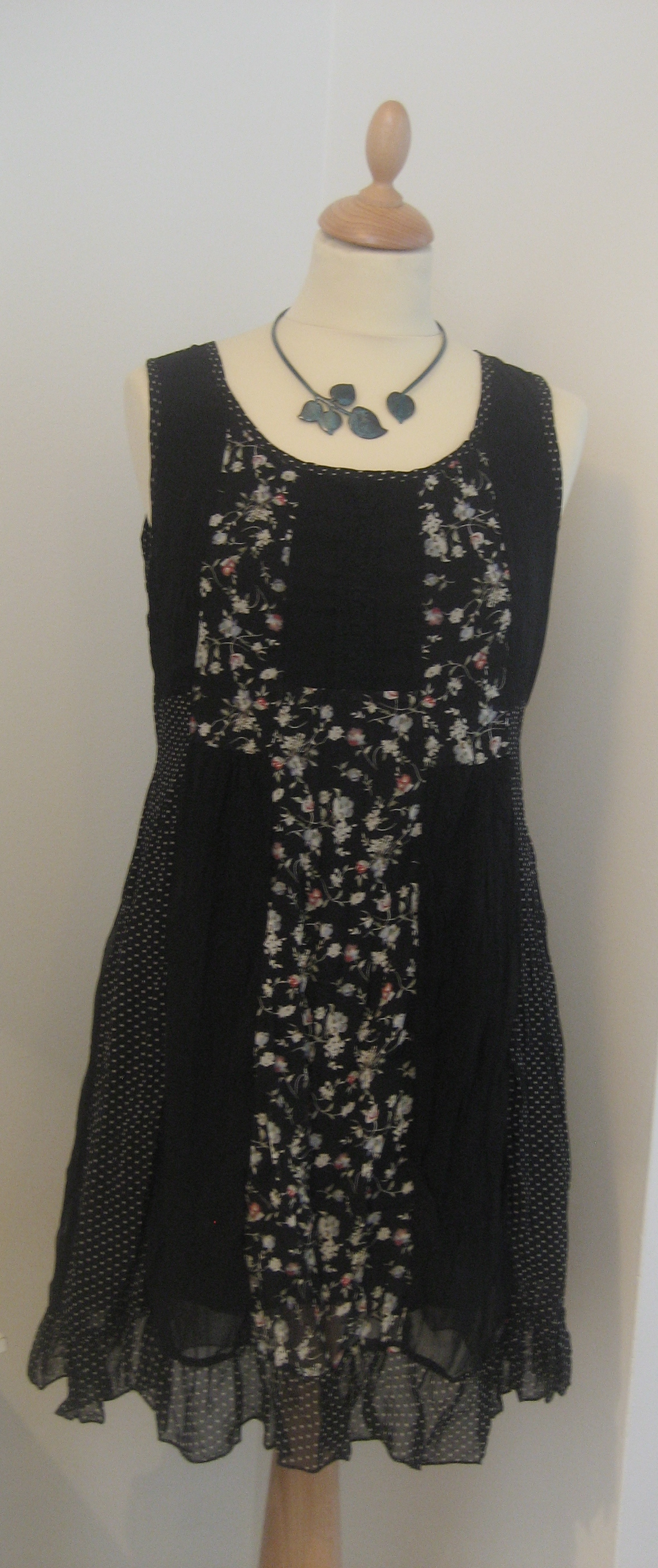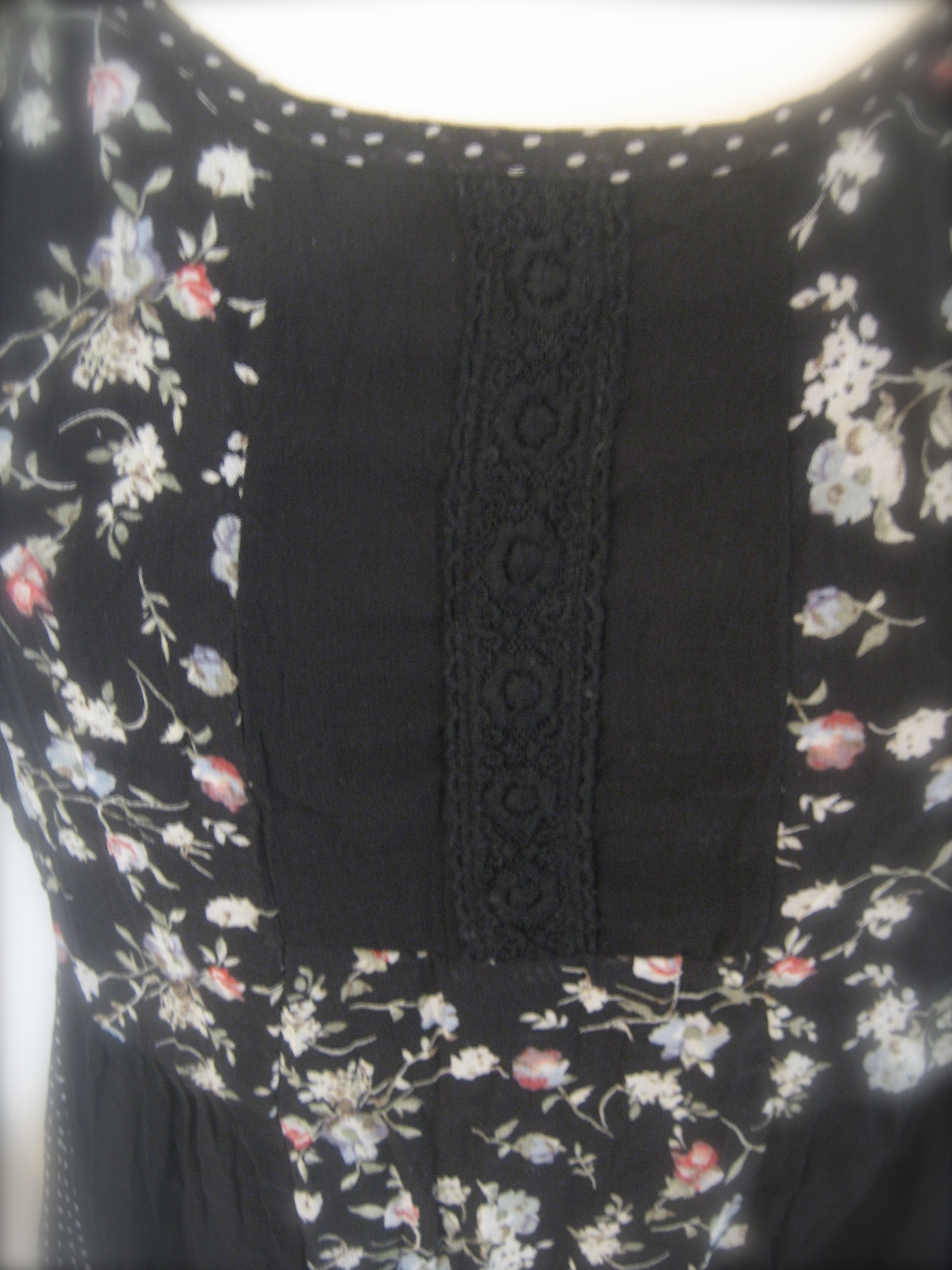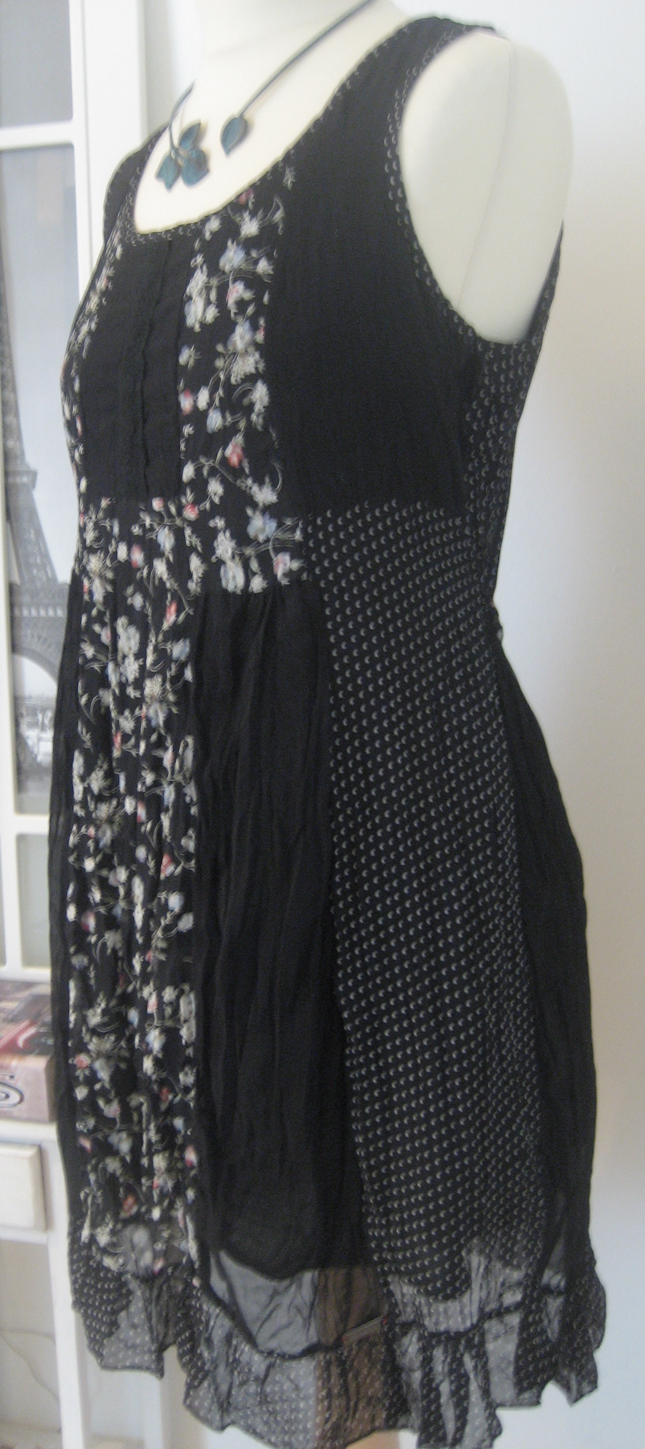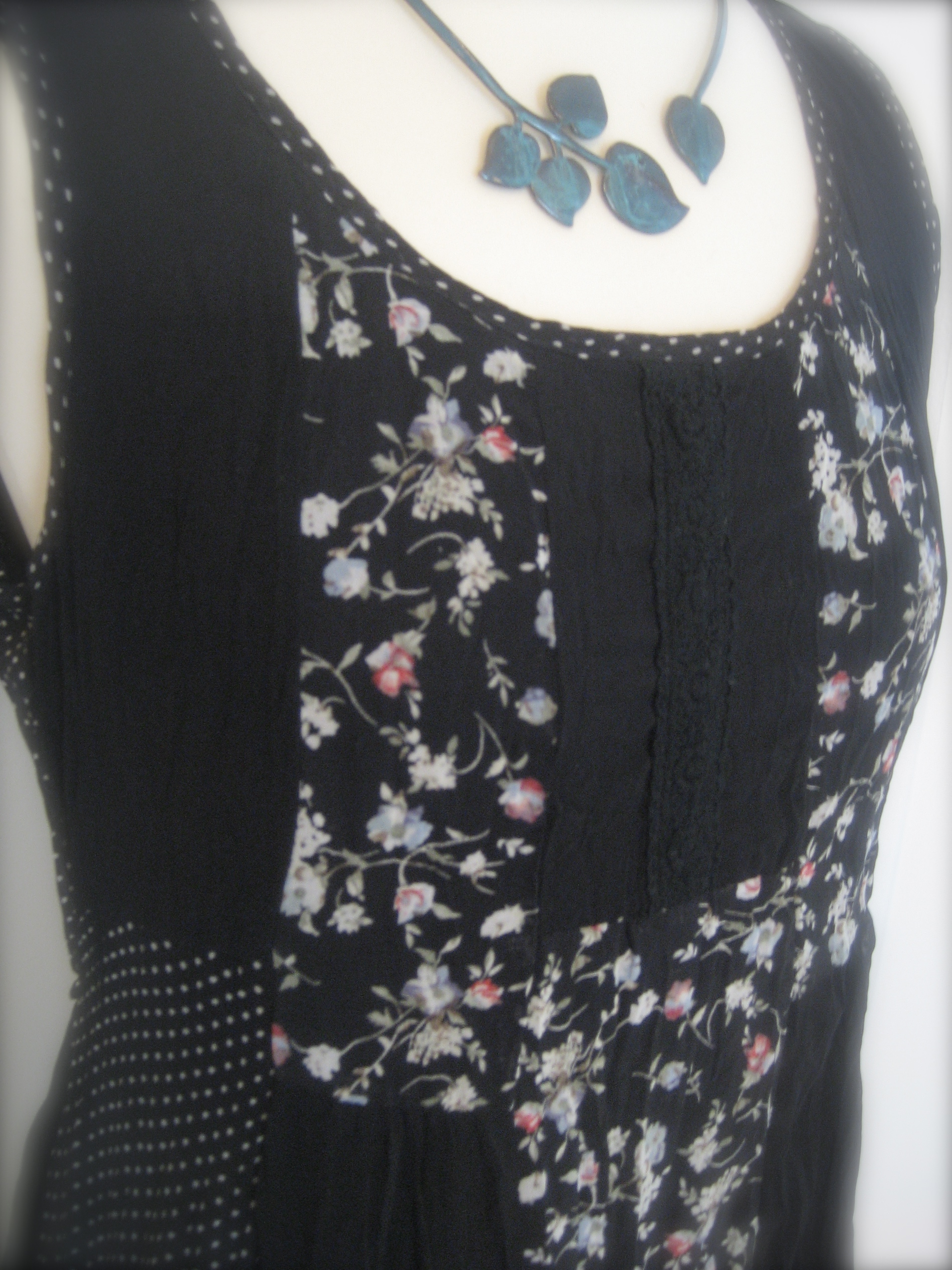 Kjóllinn er eiginlega bútasaumskjóll, gerður úr allskonar efnum og blúndum…