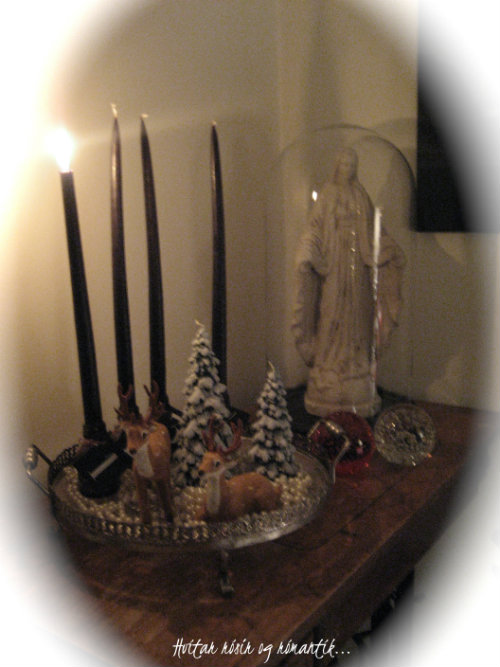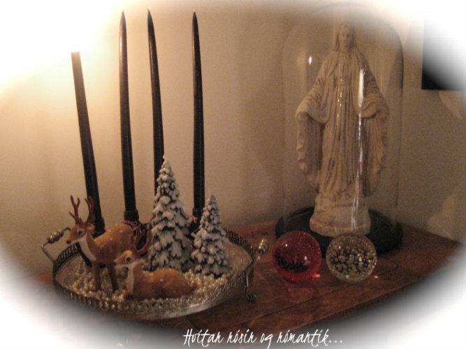 Ég setti hreindýr á minn bakka. Datt kannski einhverjum fleirum það í hug?? hehehehe 😉 svo eru þarna jólatréskerti sem ég keypti í flottustu kertabúð landsins, sem er stödd á Eskifirði!!