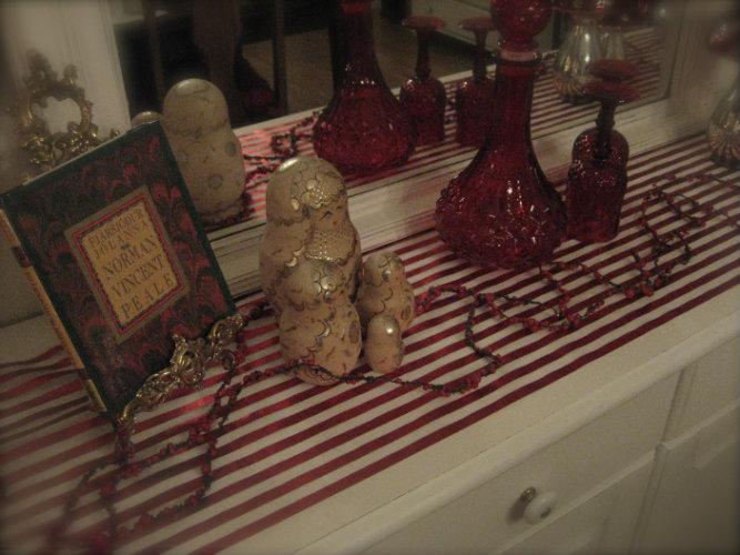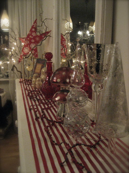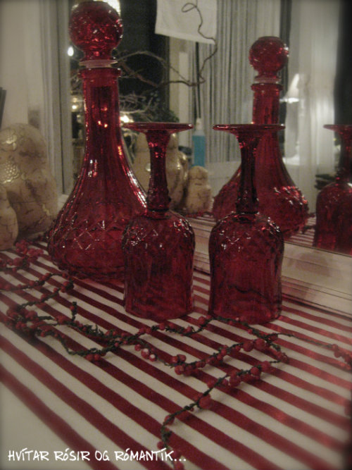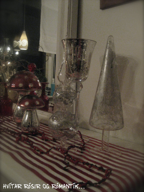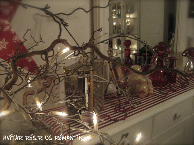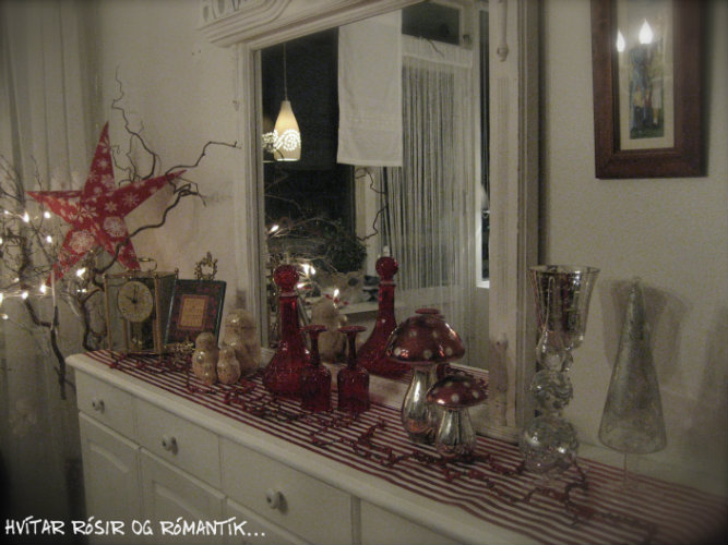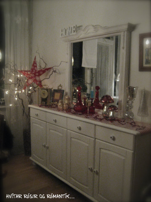 jæja nú er Frúin búin að setja jólin á stofuskenkinn og þar er rauði liturinn að sjálfsögðu í aðalhlutverki…