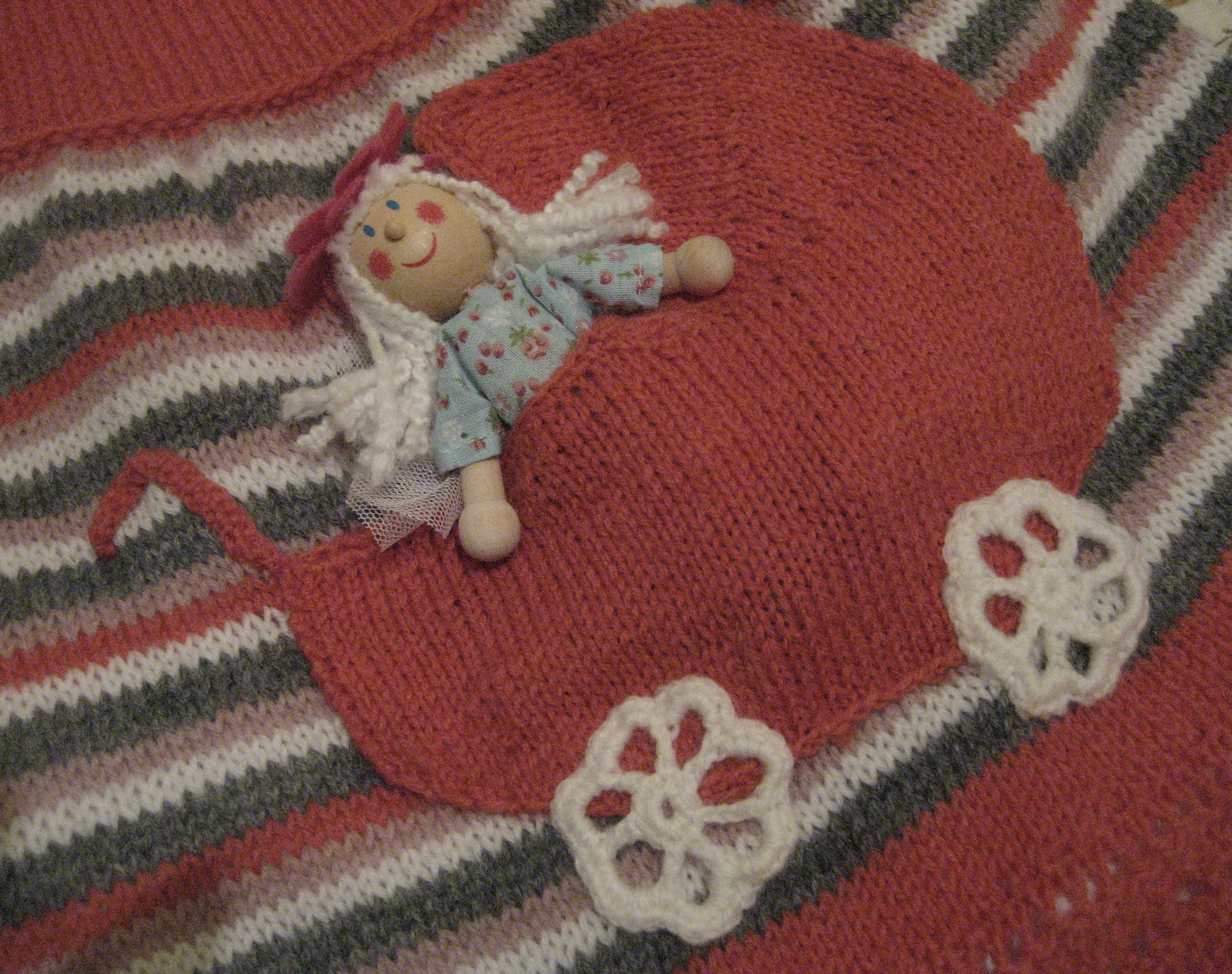 sko það á að vera prjónuð dúkka í vagninum en hún varð svo stór og klunnaleg að amman var ekki sátt, svo að hún töllti sér út í búð og keypti bara dúkku sem passar prýðilega ❤