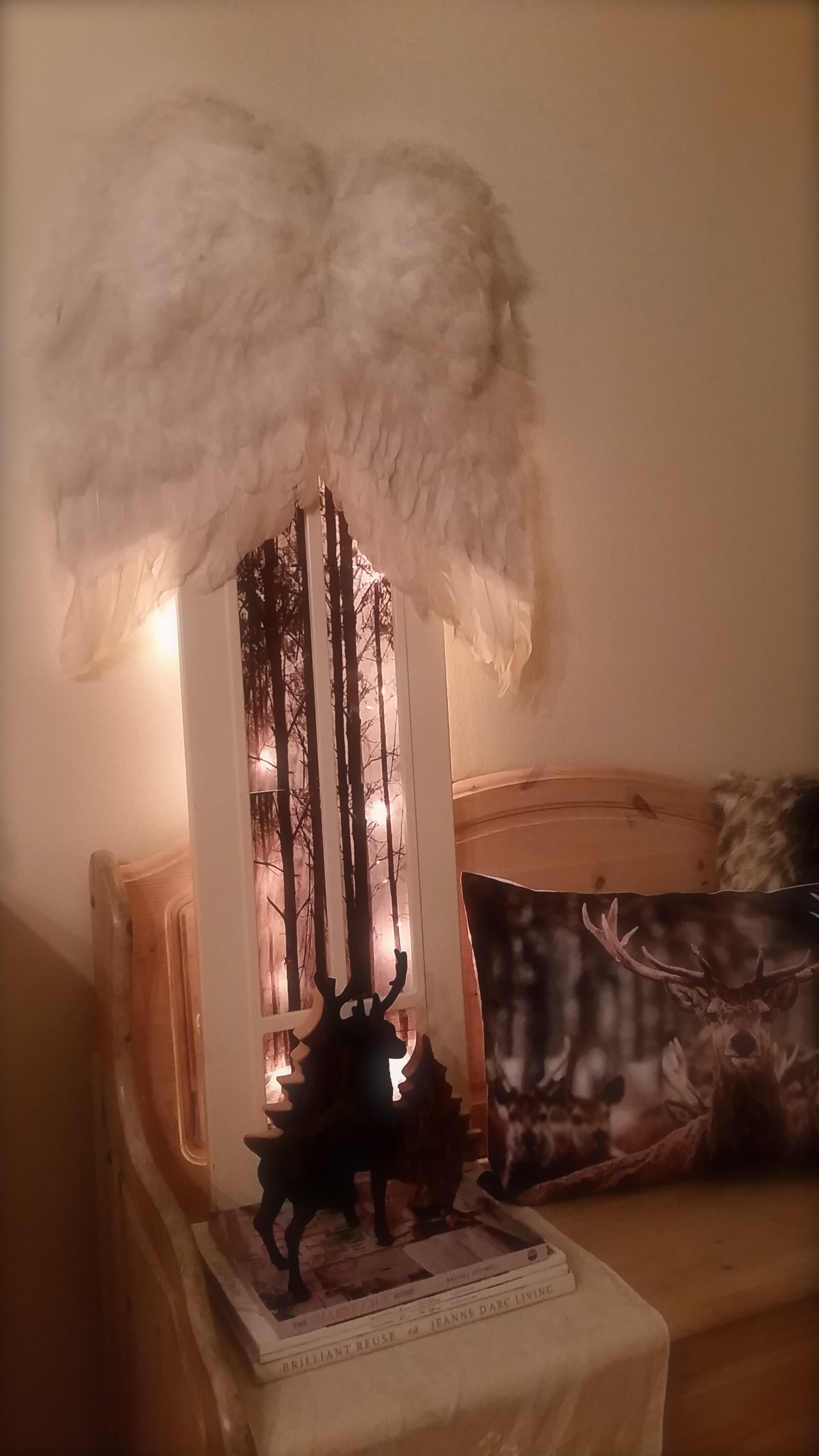 …og hér er vængirnir mínir í hvíld, það er erfiðara að taka mynd af geislabaugnum mínum, þar sem hann er fastur um hálsinn á mér…. 😉