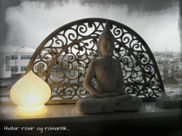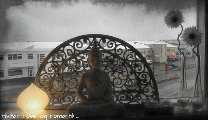 Þessi sæti situr salirólegur í rokinu og íhugar… Gúmmímottuna í glugganum málaði ég hvíta og er voða lukkuleg með´ða 🙂