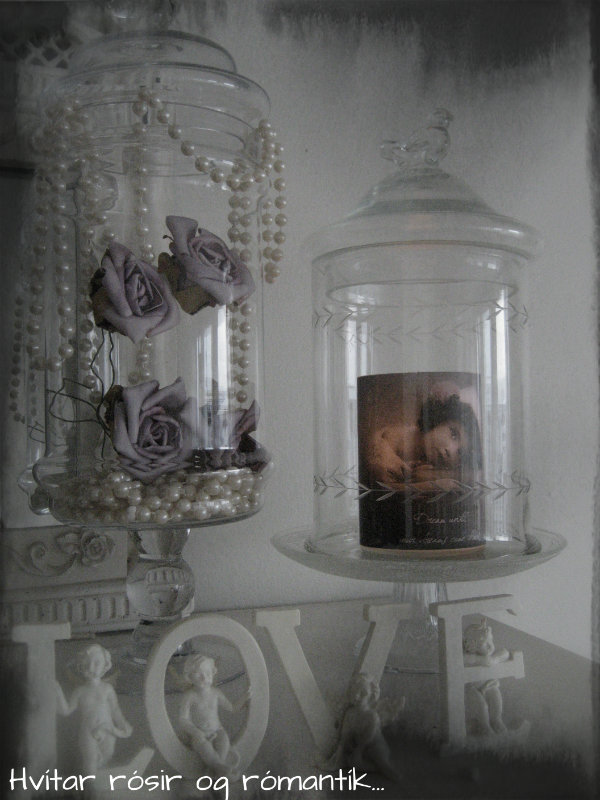 ooohhh.. þessar krúsir eru svo mikið uppáhalds… ❤ Ég skellti rafkerti, sem ég hafði sett fallega mynd á, inní minni krukkuna! Kemur skemmtilega út.