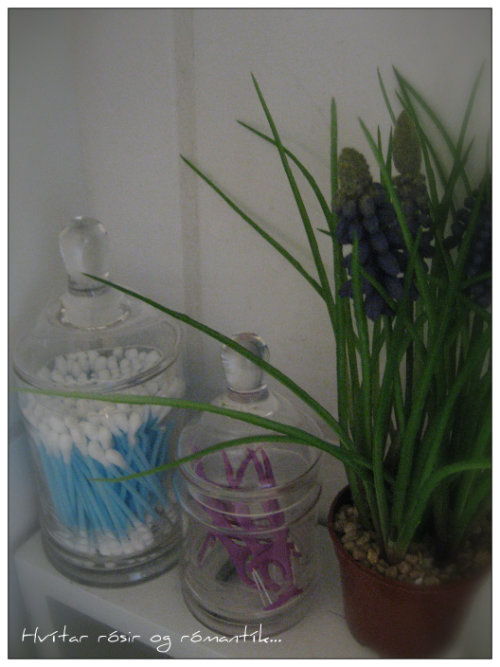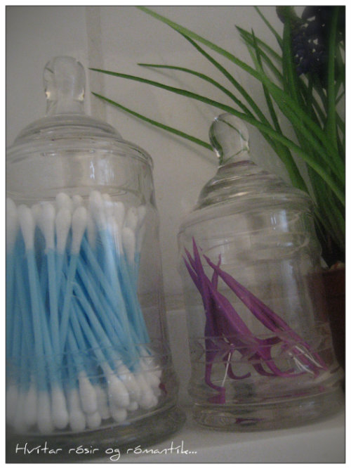 Þessar fallegu glerkrukkur eru einmitt það sem okkur vantaði inn á baðherbergið, undir eyrnapinnana og tannþráðinn…