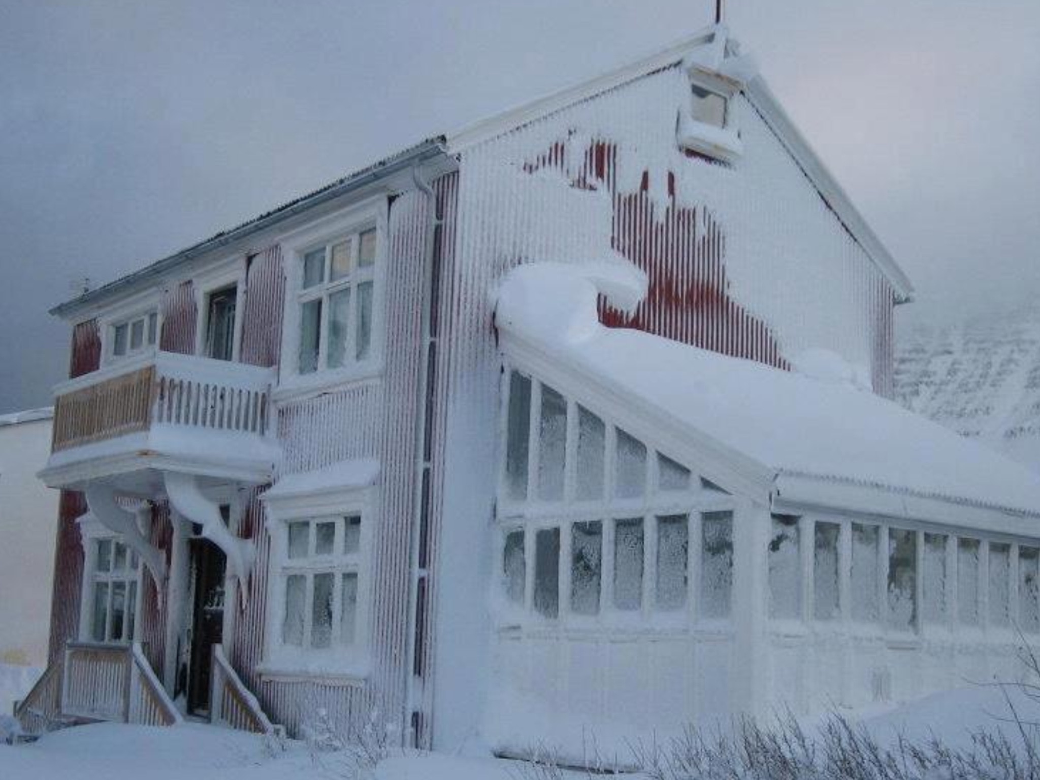 Veturkonungur hefur hér hrímað allt húsið og það verður bara notalegt að fá sér heitt skíðafélagskakó í sólskálanum á svona dögum…