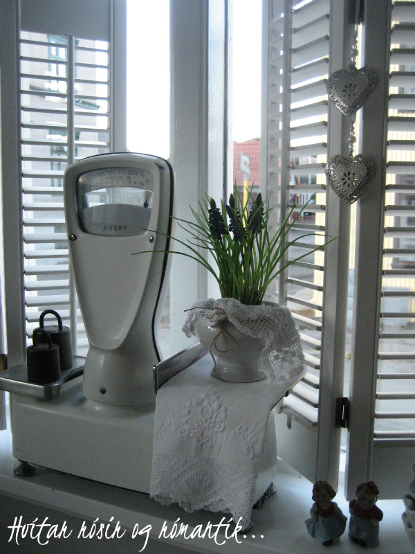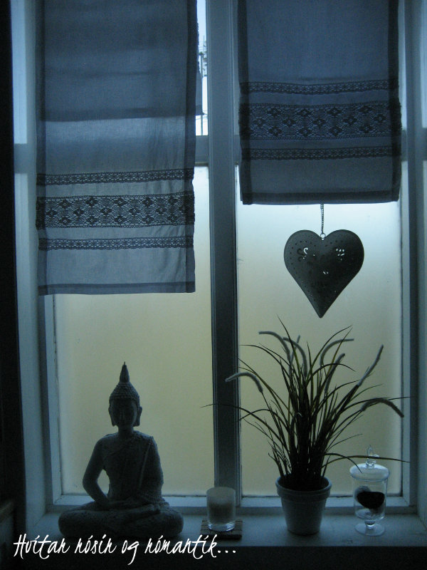 …og baðherbergisglugginn þótti mér full strípaður svo ég setti tvo sæta löbera í´ann…
