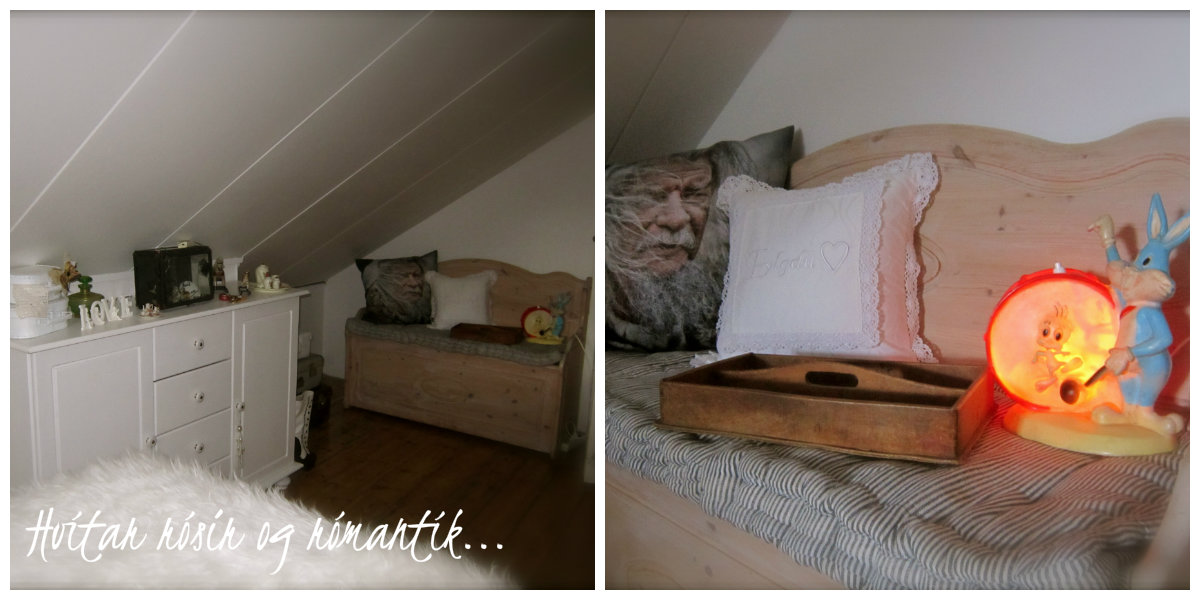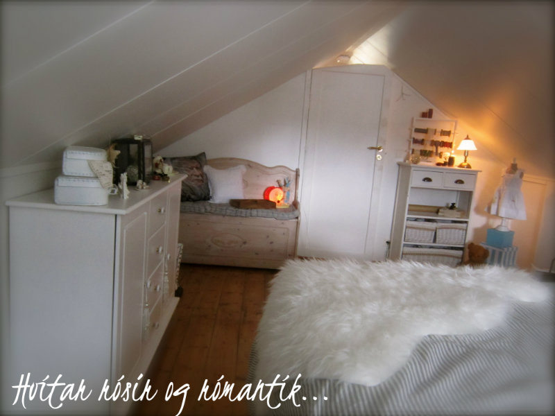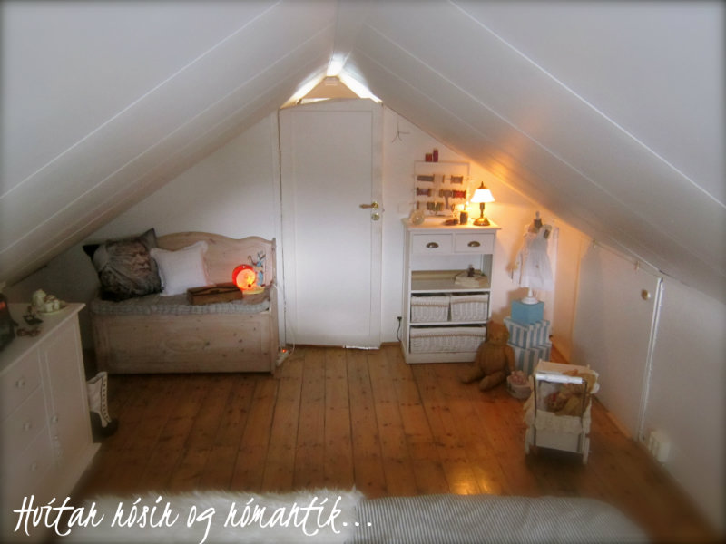 …frá því ég var lítil stelpa hefur mig dreymt um að eiga herbergi undir súð. -og nú hefur sá draumur ræst og ég búin að pota mér þar niður með fullt af minningum og allt hitt „vesenið“ mitt.