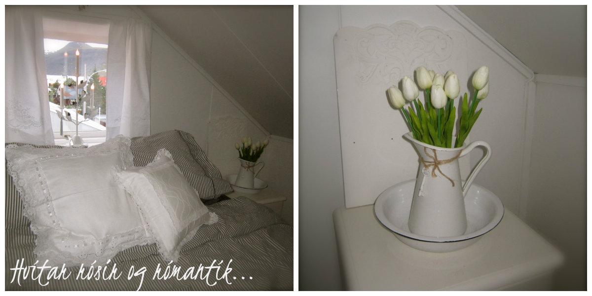 …gardínurnar gerði ég úr tveimur bróderuðum koddaverum, sem við fengum í jólagjöf frá góðum vinum, mér fannst þau svo falleg að ég tímdi ekki að „slefa“ í þau…