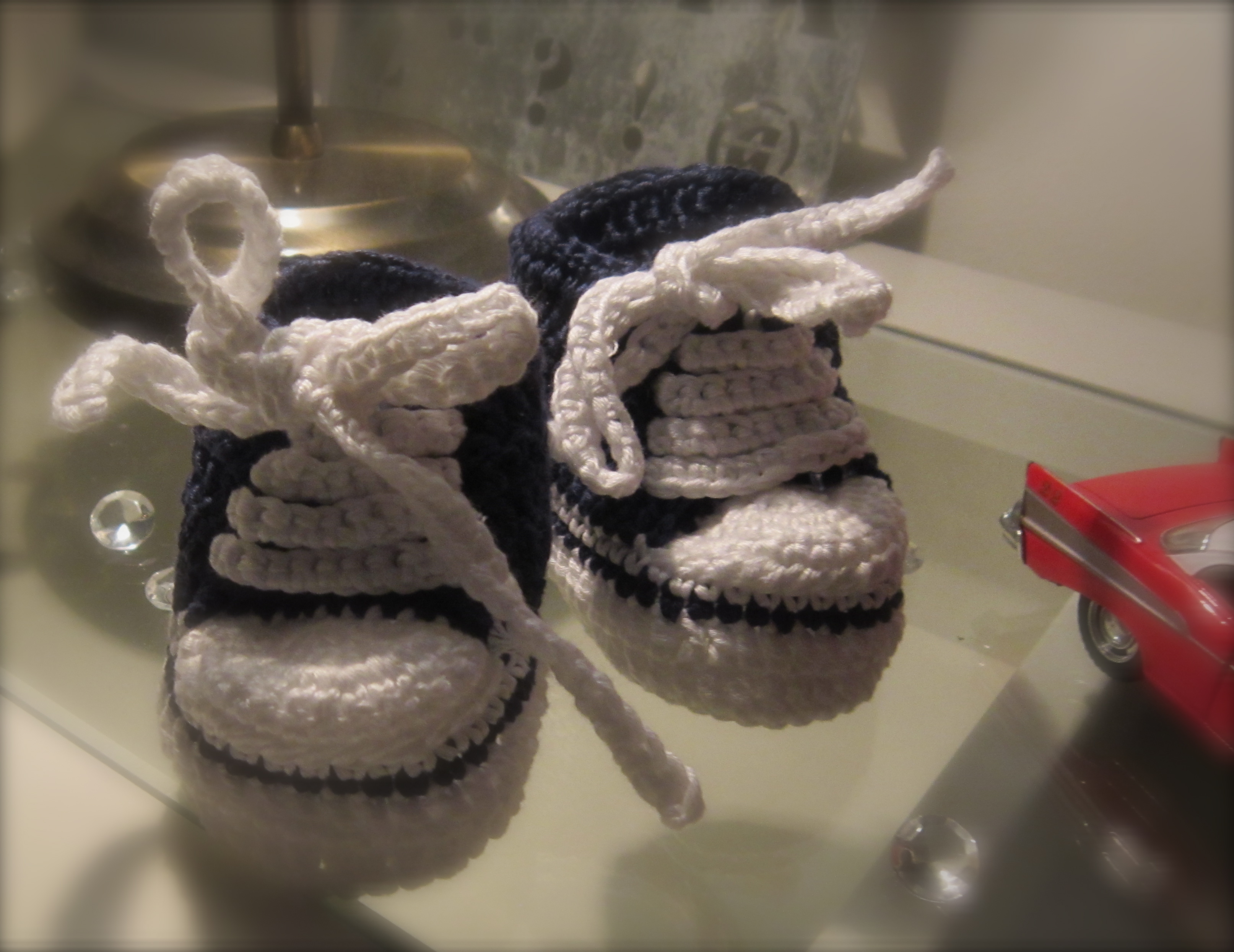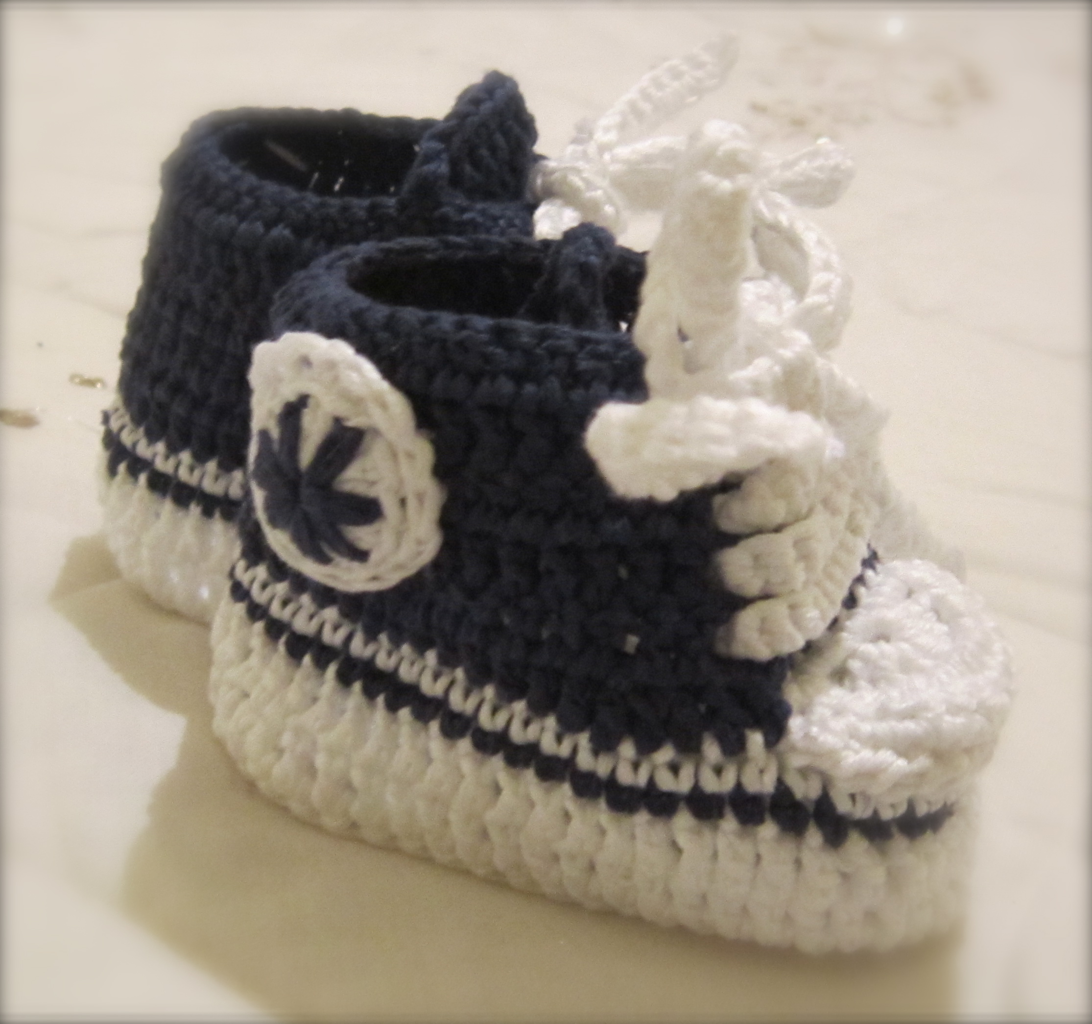Amman fékk ábendingu um að Conversskó væri hægt að hekla á litla fætur, og hvaða amma vill ekki standa sig… 😉 sjáið hér afraksturinn og þeir eru bara enn krúttilegir þegar þeir eru komnir á litla fætur.