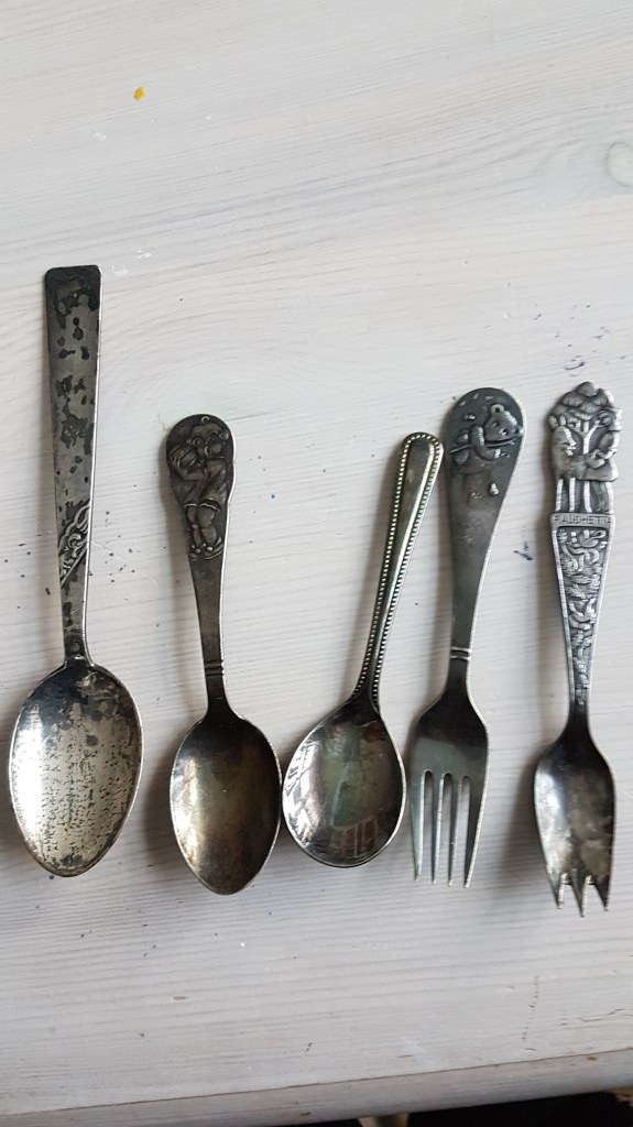 … sem hefur fallið á og enginn hefur pússað í laaaangann tíma hefur ákveðinn sjarma, en er ekkert spennandi til brúks. Frúin i T14 fann auðvelda lausn á því og skellti því vatni í pott og sauð upp, henti út í það álpappír og matarsóta!!!