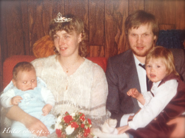 Þar sem sagan segir að við krakkarnir eigum 35 ára brúðkaupsafmæli í dag, nú þá fannst mér upplagt að rifja upp blogg frá því fyrir nokkrum árum… þar sem ég ákvað að mynda brúðarkjólinn minn á gínunni góðu. 😉 Hann prjónaði ég úr eingirni, en hef svo sem aldrei verið almennilega ánægð með´ann… en maður lét hann duga þennan dag! En hann myndast þó ágætlega… 🙂