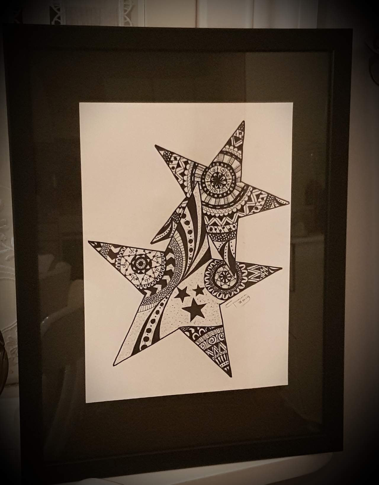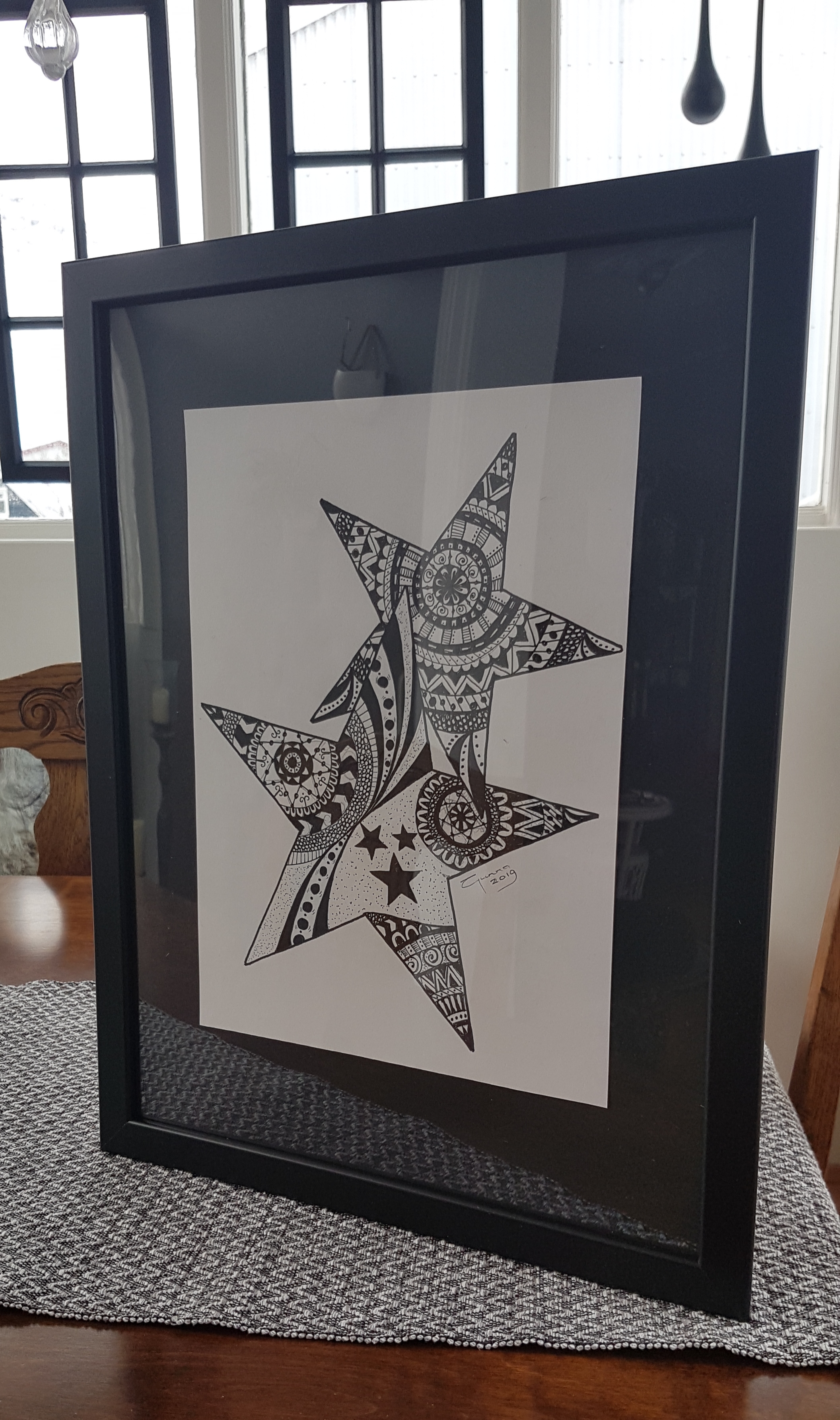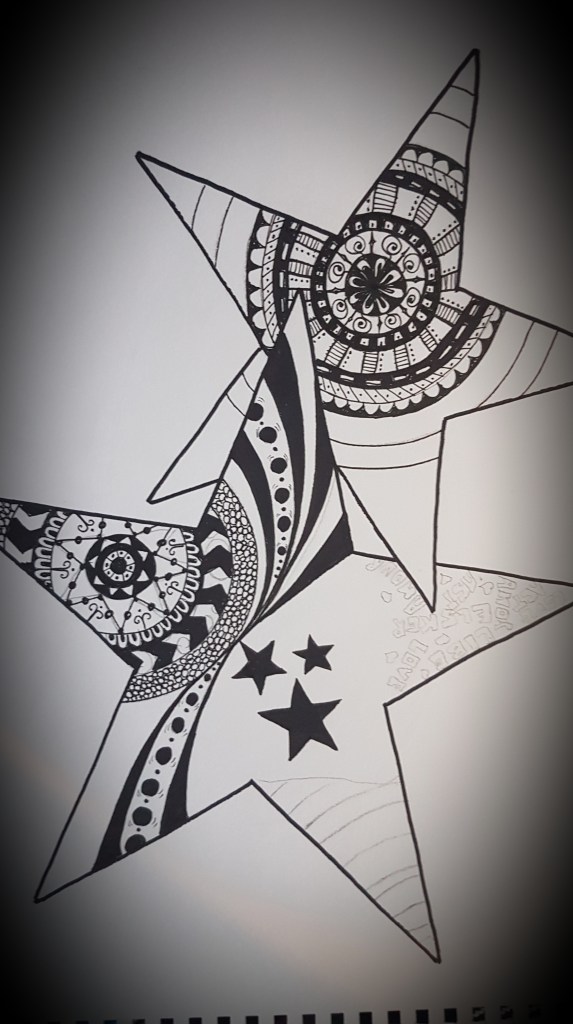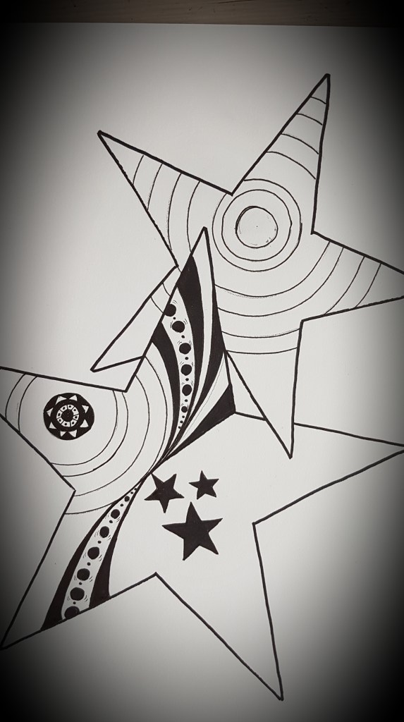 Mig langaði til að gefa afmælisgjöf sem væri persónuleg og þar sem afmælisbarnið er mikil stjarna♥️ þá ákvað ég að gefa henni stjörnumynd… þetta er mjög einfalt en kemur samt skemmtulega út. Ég deili með ykkur ferlinu en ég prentaði út stjörnur á pappírinn fyrst, mætti vera hjörtu, tungl eða hringir og fyllti svo i formin…😊