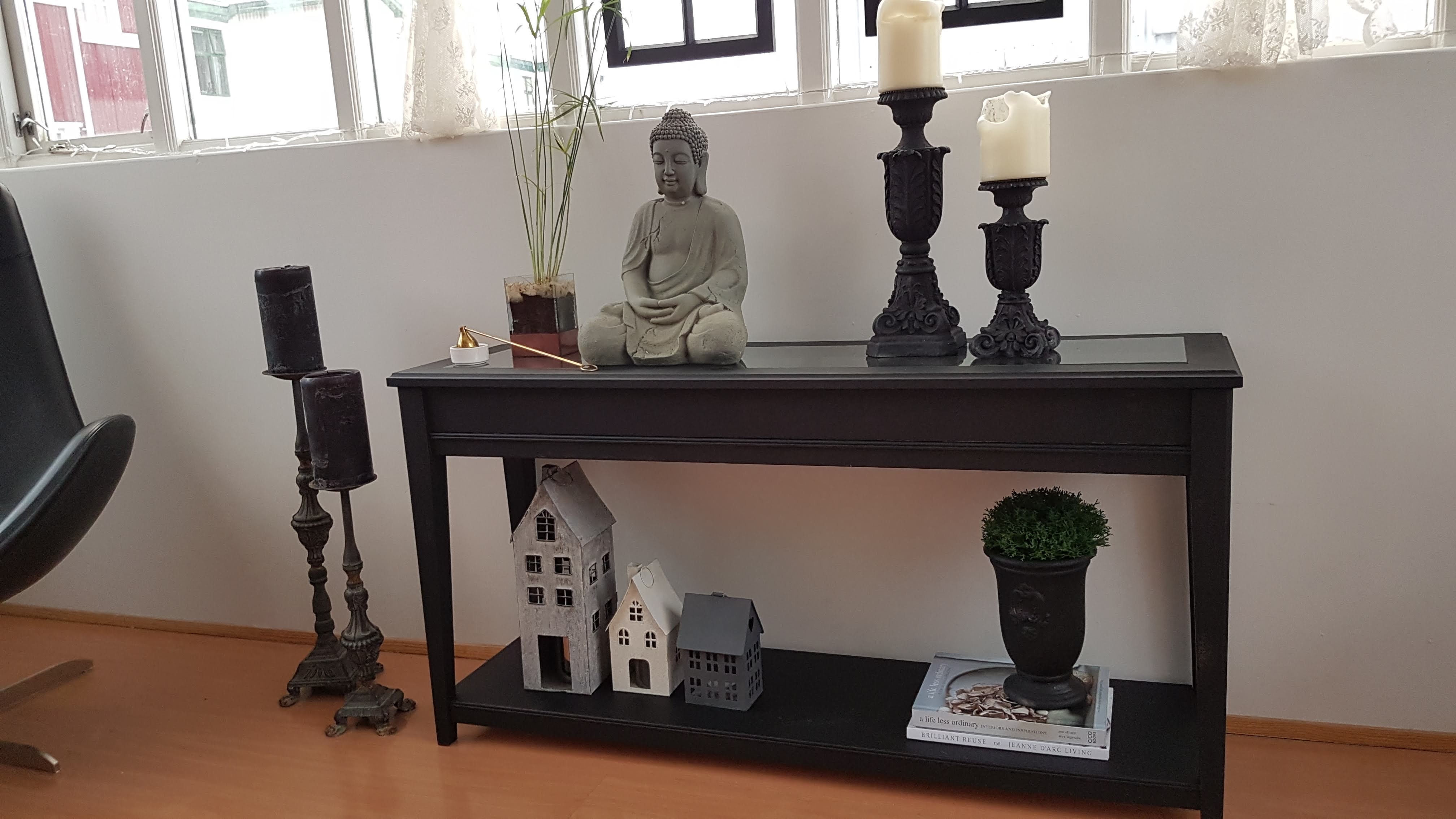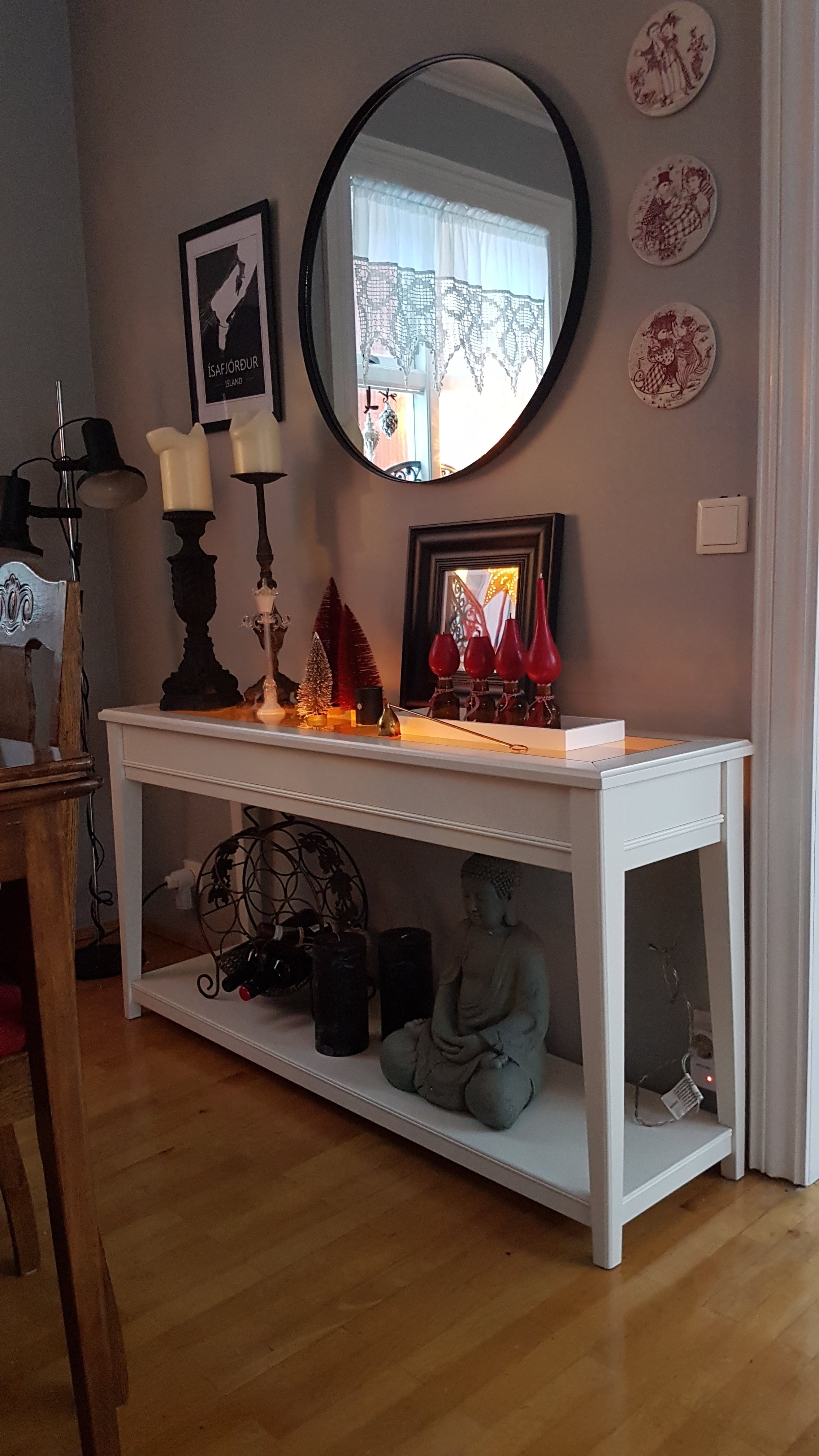 Fyrir jólin tók ég mig til og málaði borð sem við eigum og keyptum fyrir nokkrum árum í IKEA… Ég valdi að mála það svart matt.