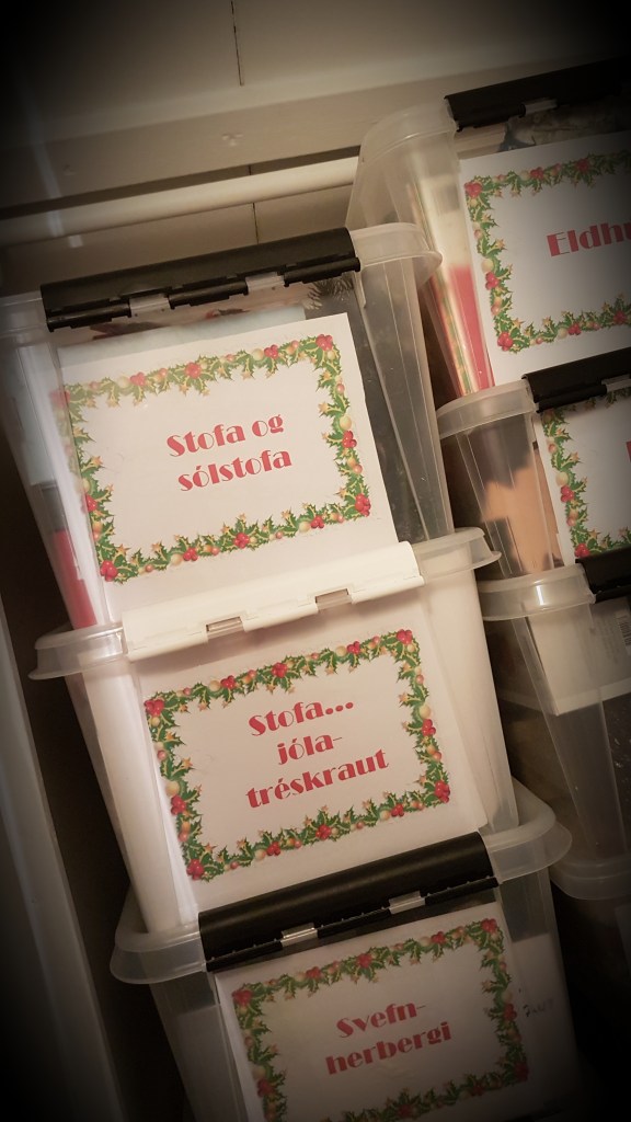 …skiptir öllu máli sérstaklega þegar maður á mikið til af allskyns dóti og skrauti. Svo til þess að losna við að róta í kössum eftir hlutunum þá er ég dugleg við að merkja allt. T.d jólaskrautið mitt þar fer nú upp eftir ákveðnu skipulagi á aðventunni og þá er nú betra fyrir alla að Frúin geti gengið að því öllu í réttri röð 😉