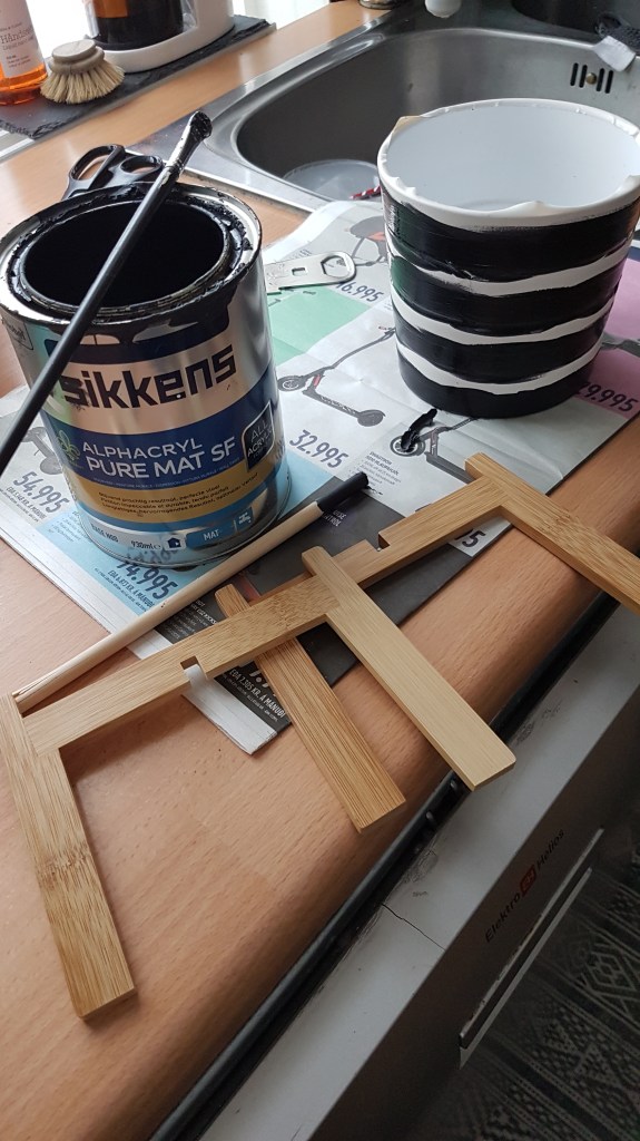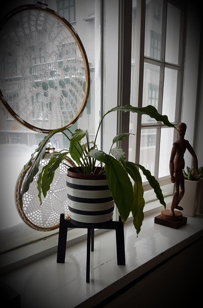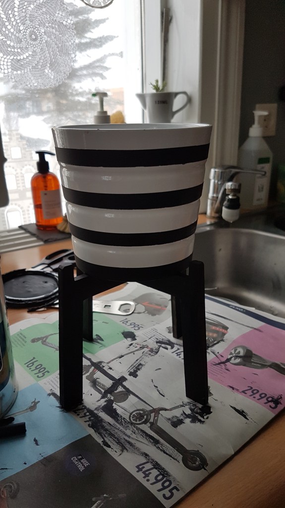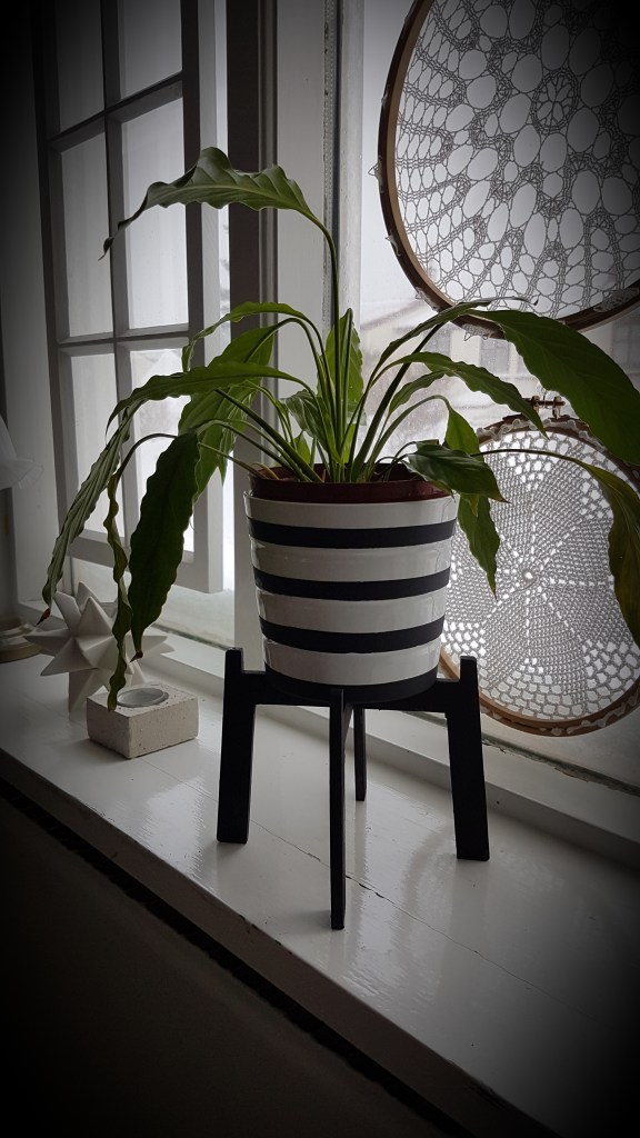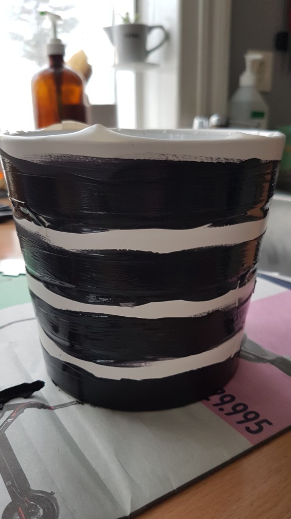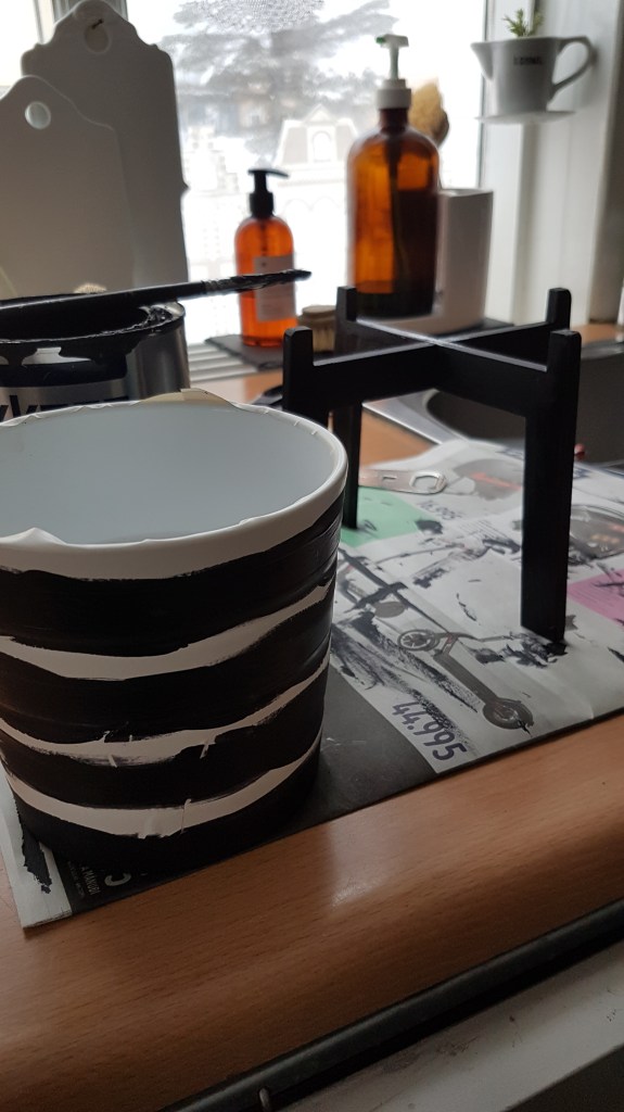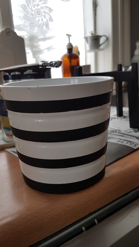 ….ég fékk svo fallega skál um daginn og þá langaði mig að dubba upp á blómapott sem ég á og hann gæti þá „kallast“ á við skálina….
