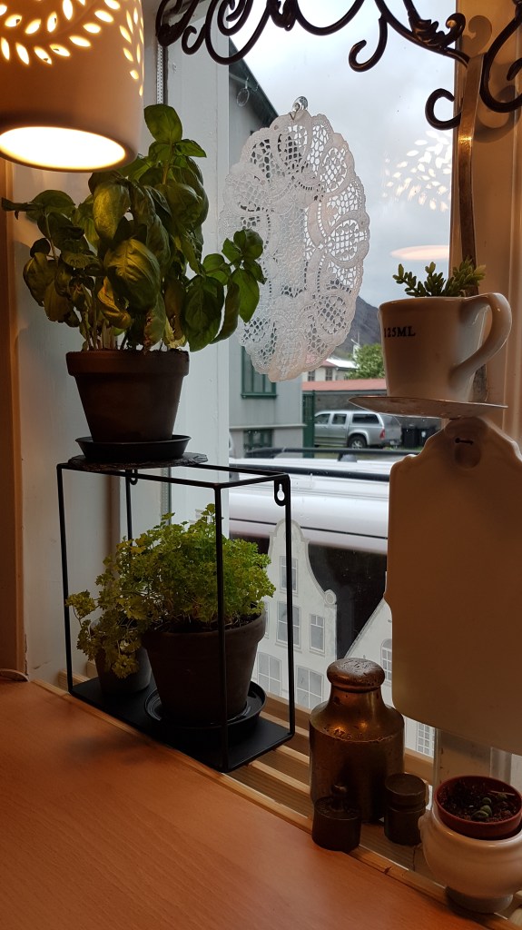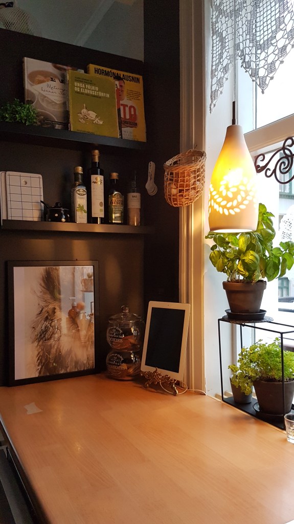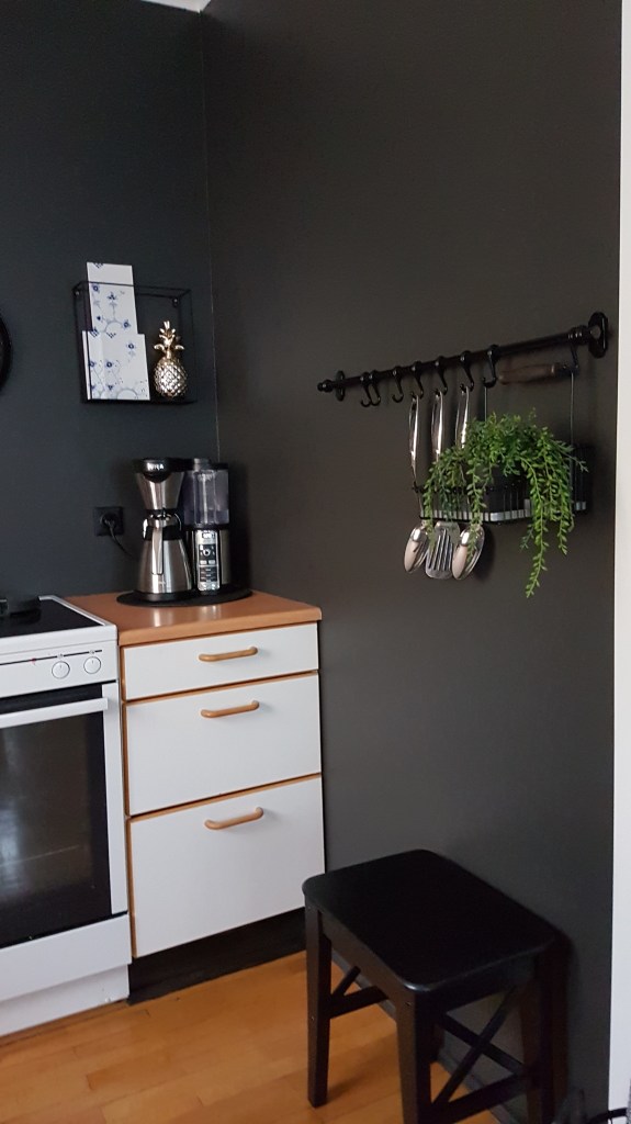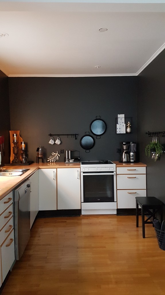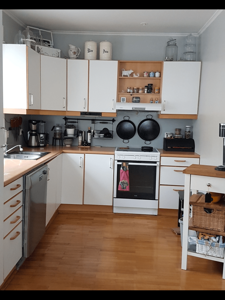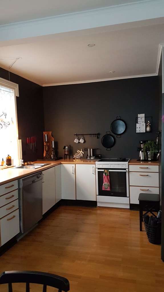 …mig er lengi búið að langa til að rífa niður efri skápana í eldhúsinu hjá okkur, og nú létum við vetða af því…