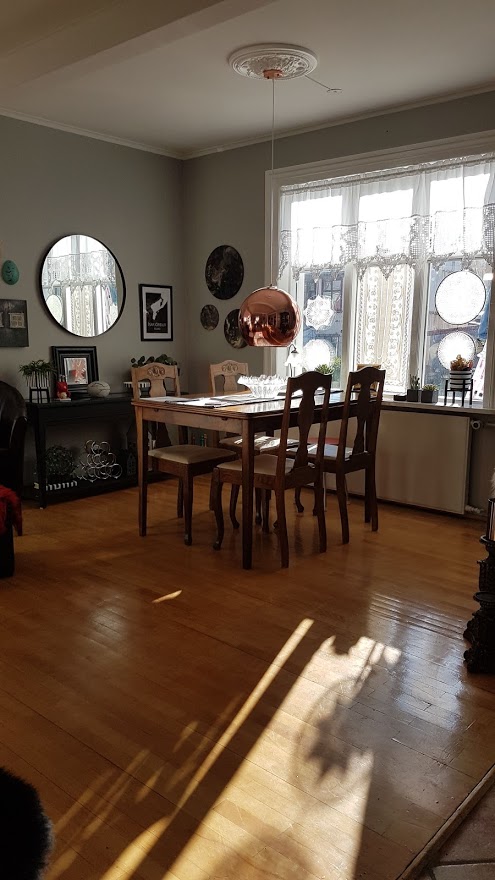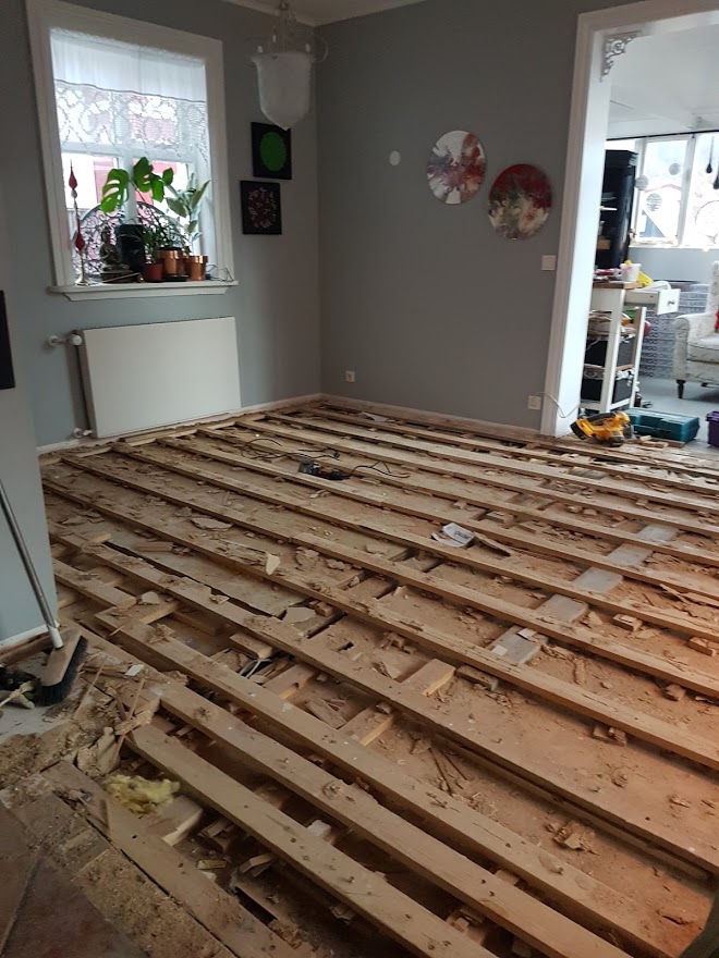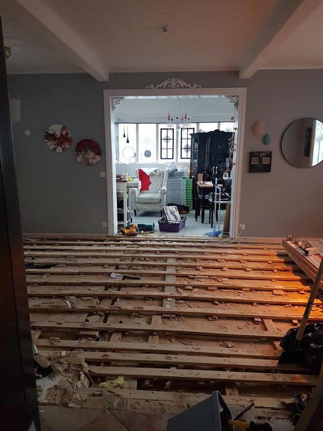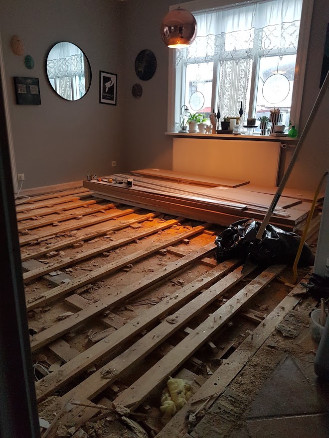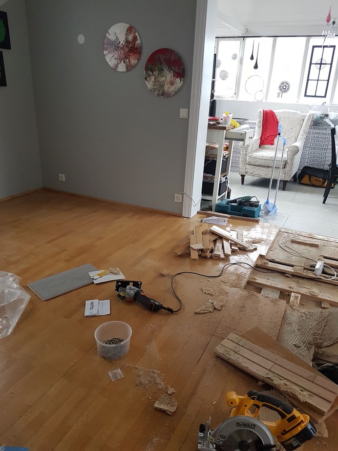 …það hafa staðið yfir miklar framkvæmdir í T14 og öll hæðin þ.e stofan, eldhús, sólstofan og gangurinn verið undirlögð. það voru 3 gerðir af gólfefnum á hæðinni og þrep á milli allra rýma sem við létum hækka og gera allt jafnslétt… þetta er búið að vera töff, parkettið var límt á stofu og eldhús og rykið maður minn þegar við vorum að rífa það upp og pússa burt límið… En nú er að koma lag á læk… í dag fáið þið smá sýnishorn af því sem er orðið sýningarhæft og ryklaust að mestu… 😉