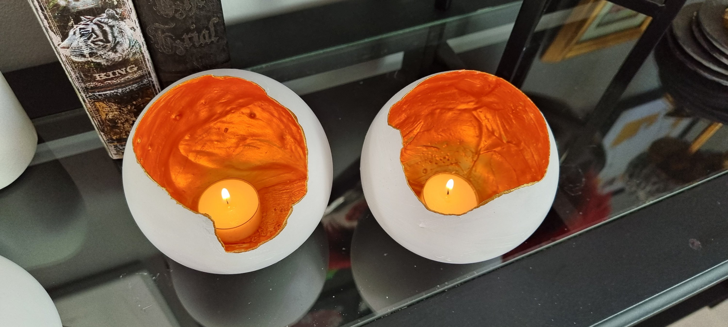 …voru steyptir úr gifsi hér i gær og svo málaði ég þá gyllta inní. Kom skemmtilega á óvart..
