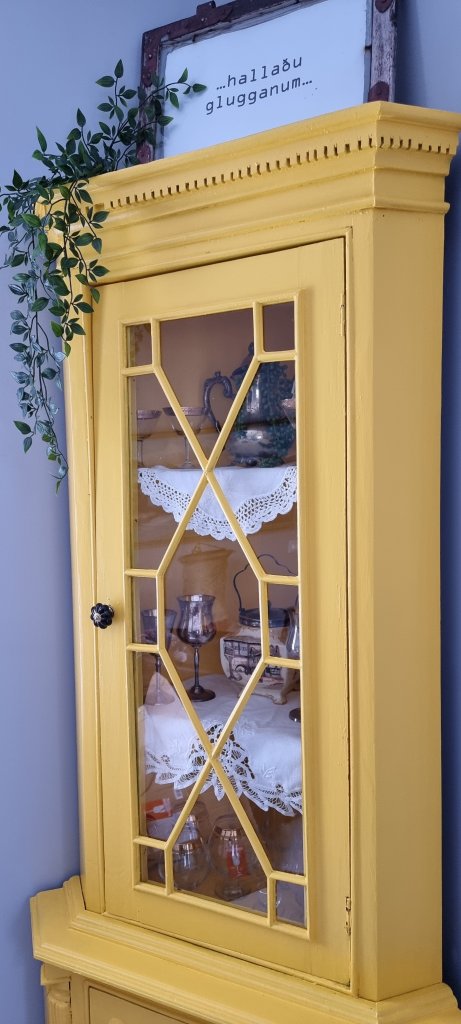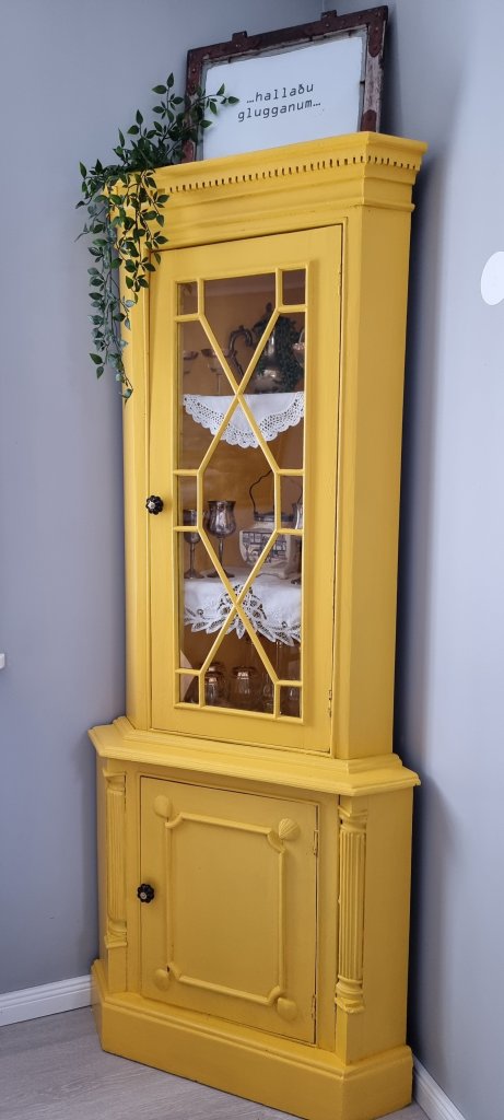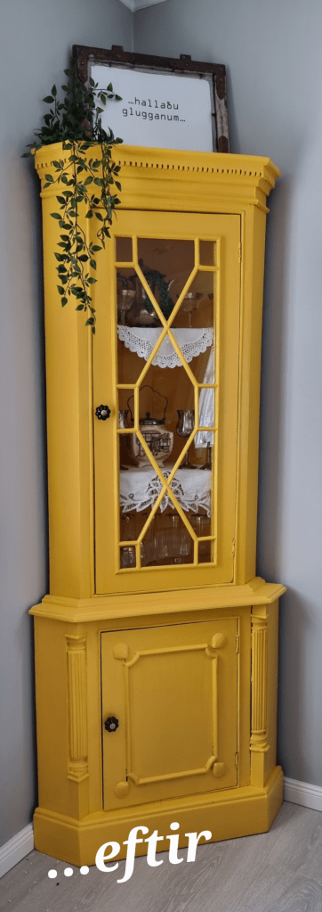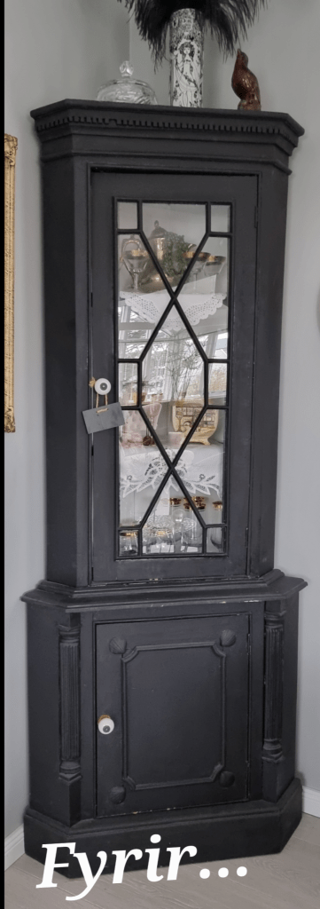 …loksins kláraði ég að mála hornskápinn… mig langaði aðeins að létta á svörtu stemmingunni sem er í stofunni.