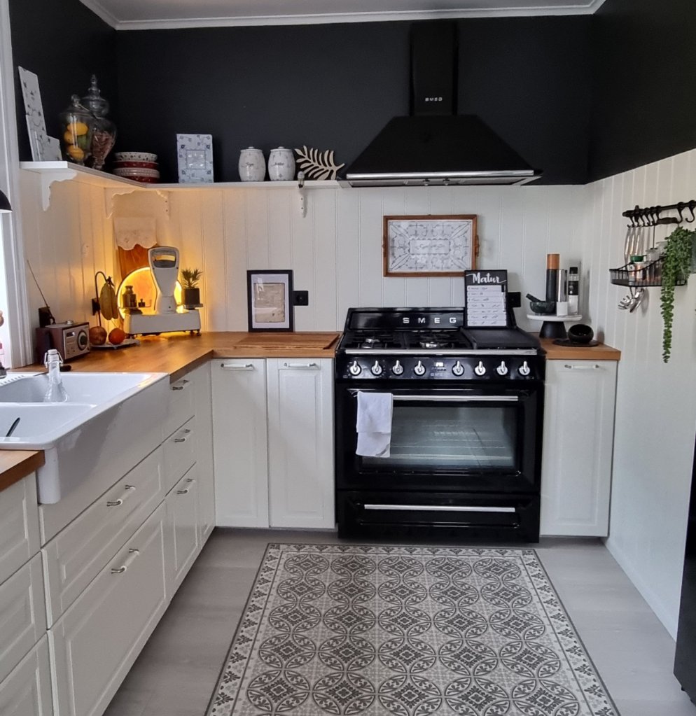…við eru búin að velta því lengi fyrir okkur hvort við vildum flisar eða panel í eldhúsið. En svo varð það panell.
