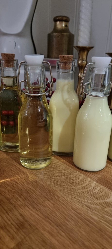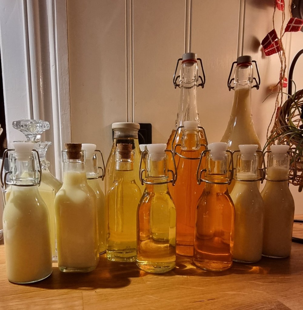 Maður notar börkinn af lifrænt ræktuðum 8 sítrónum eða 20 mandarínum. Þrifur börkinn vel. Börkurinn settur í 750 ml af vodka/gini og latið vera i 3 vikur. Þa er börkurinn síaður fra. Sjóða syrop 750ml vatn með 265 gr sykri og 750 ml af mjolk með 265 gr sykri( sitthvor potturinn) víninu skipt i tvennt og sett útí sitthvora kældar sykurblöndurnar. Sett a flöskur og geymt i kæli. Njótið