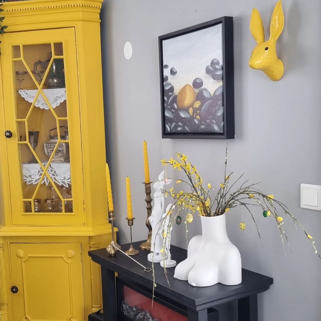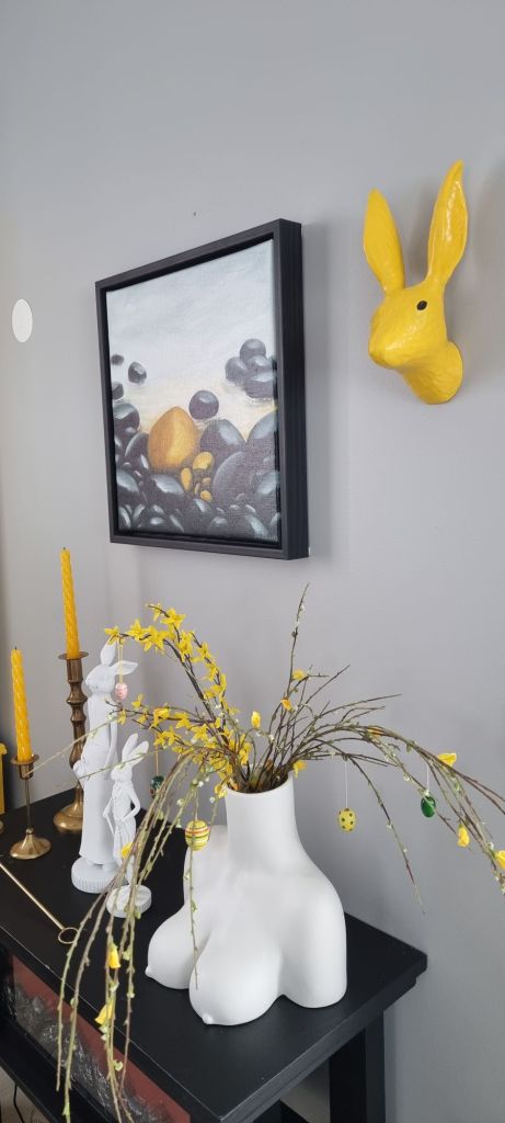 …ég málaði kanínu sem ég fékk í Ikea gula, svona i tilefni komu páskanna….